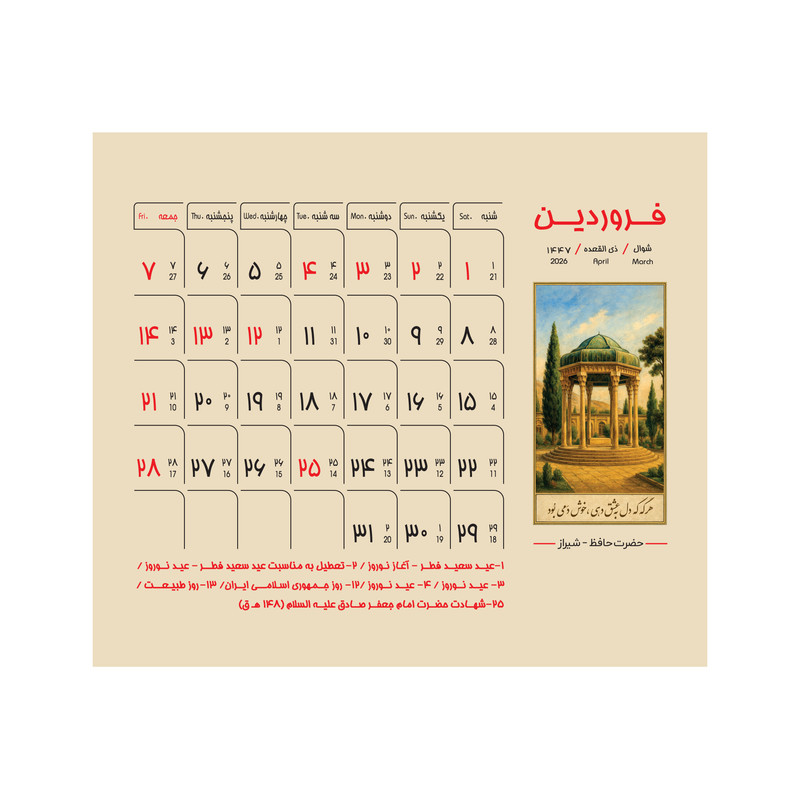 نوع تقویم: میلادی , شمسی , قمری