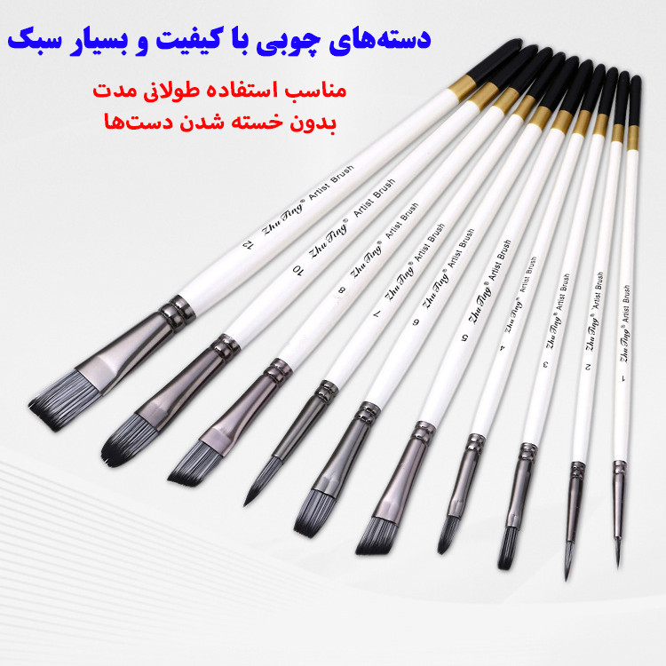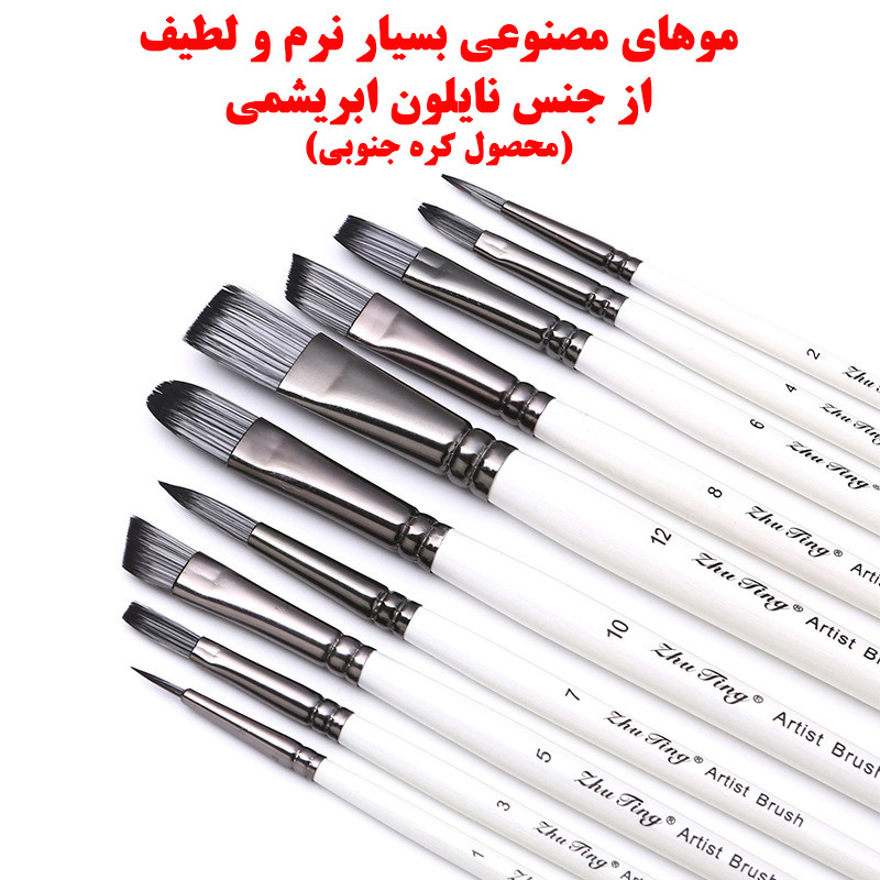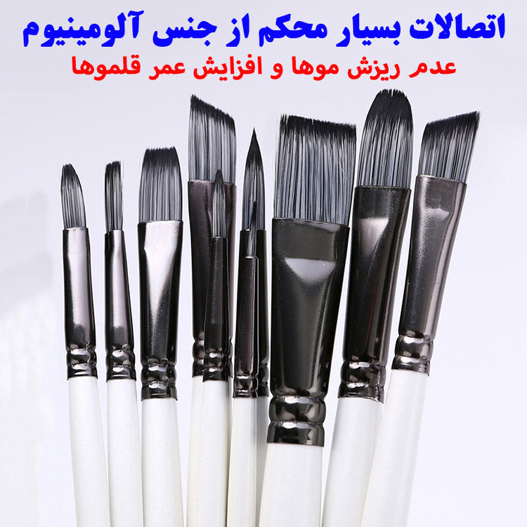 دستههای چوبی با رنگ بسیار با کیفیت - موهای مصنوعی بسیار نرم و لطیف محصول کره جنوبی - جذب آب بسیار بالا - اتصالات آلومینیومی محکم و با داوم -عدم ریزش مو - رنگ جذاب و خاص موهای قلمو