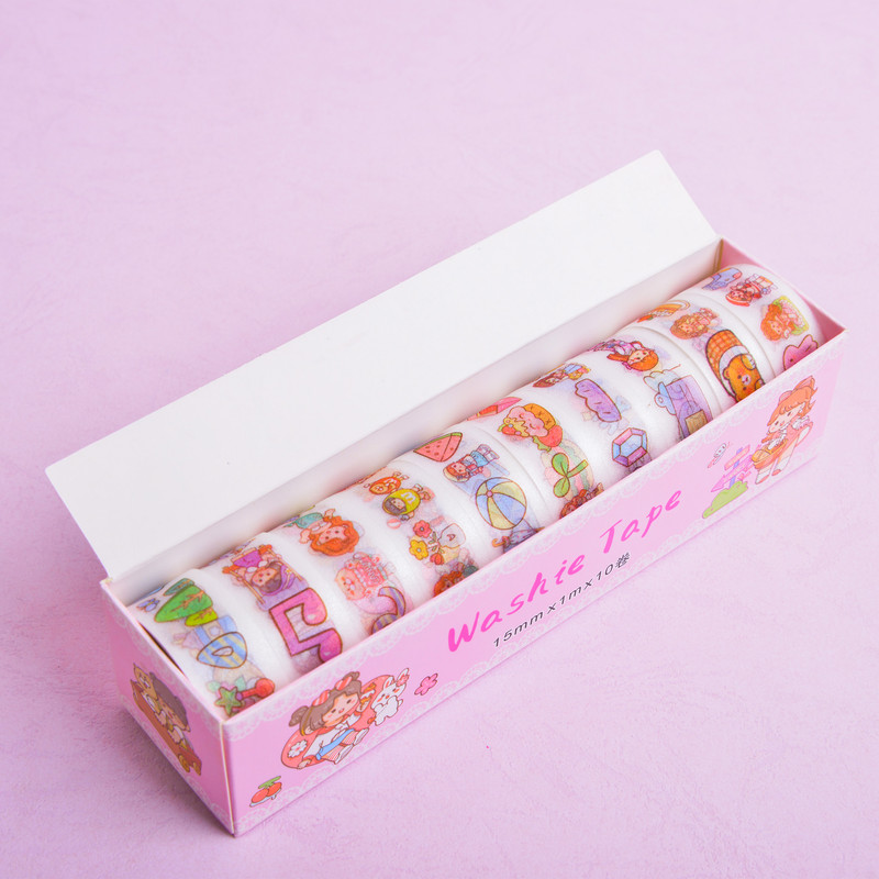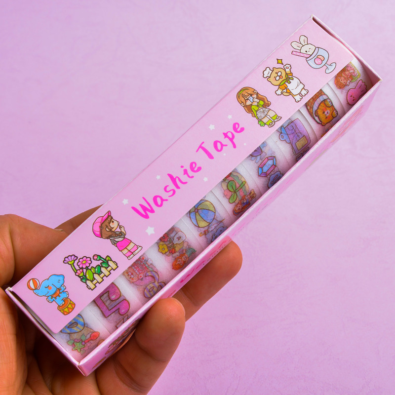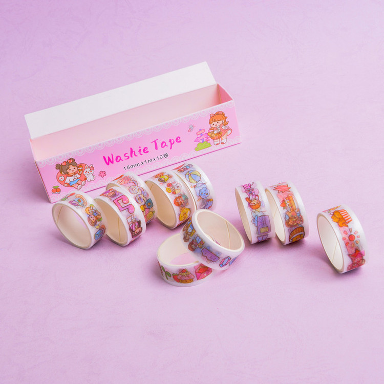 10 عدد نوار چسب واشی با طرح فانتزی دخترانه و دوستان ...... در یک بسته بندی مطابق با تصاویر