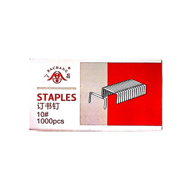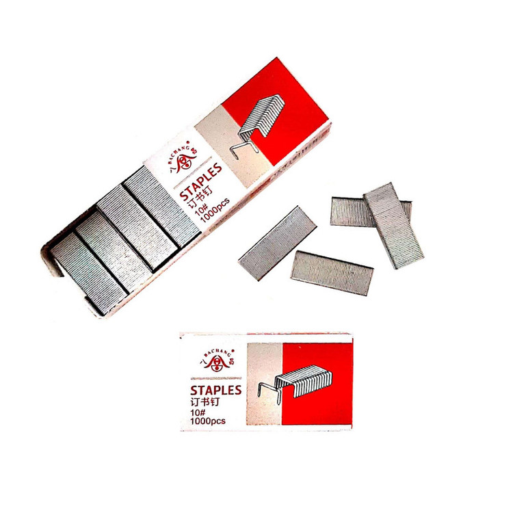 هر بسته شامل 1000 عدد سوزن منگنه سایز 10 رنگ نقره ای