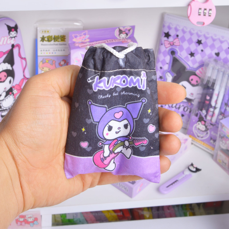 بسته لوازم تحریر شامل 3 عدد خودکار آکواریومی به همراه یک عدد کیسه پارچه ای کرومی