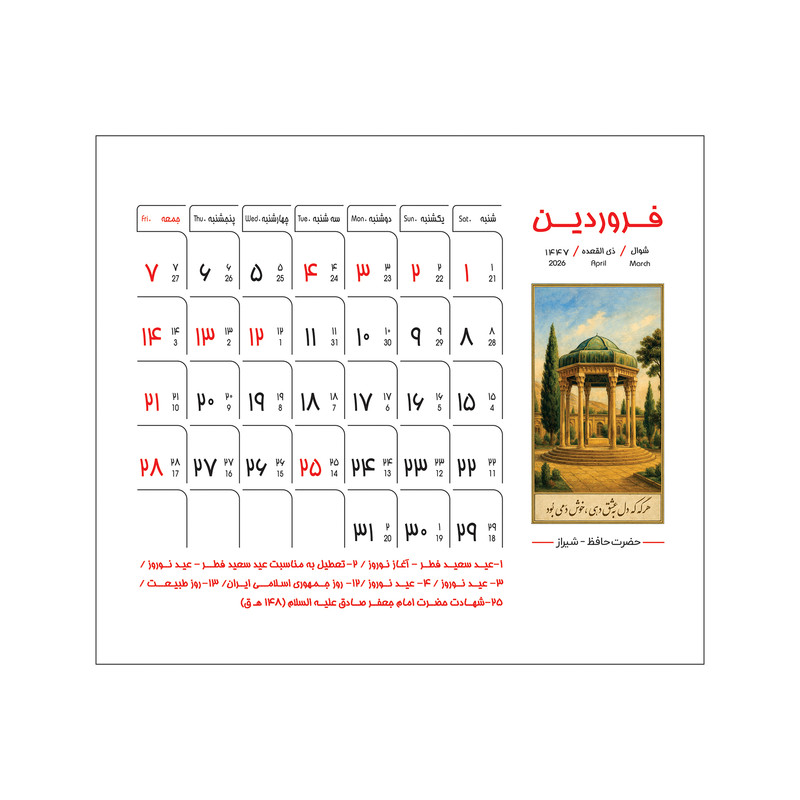نوع تقویم: میلادی , شمسی , قمری