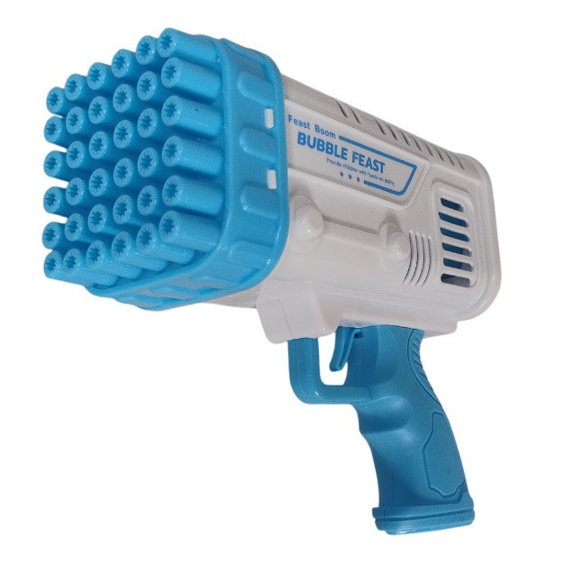 تفنگ حبابساز به طول ۱۵ سانتیمتر . دارای دو سری 8 و 36 حفره تولید حباب کوچک و بزرگ . نیاز به ۴ عدد باتری قلمی میباشد ( از باتری قوی و مرغوب استفاده شود ) .