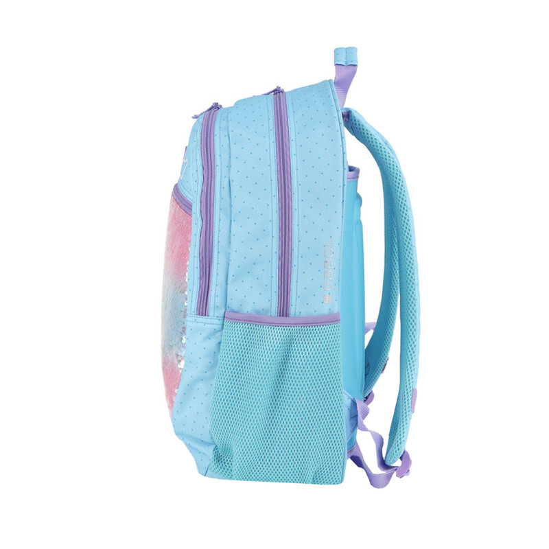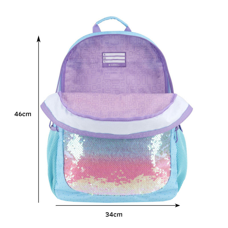 1. بالشتکهای شانه دار و تقویتشده , 2. پایه پد دار با محافظ پلاستیکی تقویتکننده , 3. کمربند سینه قابل تنظیم , 4. ساخته شده از مواد بدون پی وی سی, کولهپشتی Rainbow با استفاده از مواد بدون پی وی سی تولید شده است