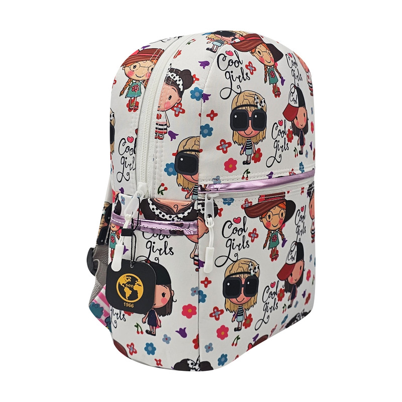 ابعاد کوله به شرح زیر است: ارتفاع: 33سانتی متر طول : 27سانتی متر عرض: 11سانتی متر دارای یک جیب بزرگ یک جیب کوچک دو جیب قمقمه در طرفین کوله این کوله دارای آستر و مغزی دوزی شده است.