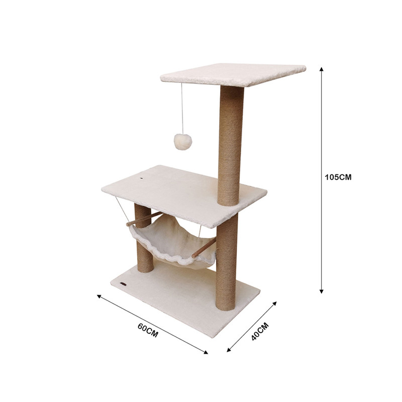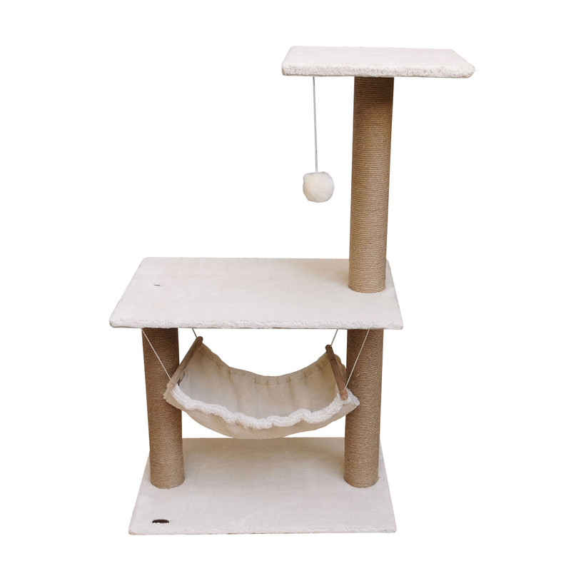 اسکرچر گربه مدل C15 PLUS یکی از اسکرچرهای زیبا و با کیفیت از برند هیواپت است. این سازه در ابعاد 60x40 با ارتفاع 105سانتی متر به صورت دو طبقه تولید میشود. وزن این اسکرچر 10 کیلوگرم است. طبقه ی اول این اسکرچر از یک تخته مستطیل شکل تشکیل شده است. این طبقه با دو استوانه ی پوشیده شده از کنف به طبقه ی دوم متصل می شود. طبقه ی اول این سازه دارای یک هموک یا ننو از جنس پارچه پولیش نرم است که گربه به راحتی در آن قرار میگیرد. طبقه ی دوم این سازه نیز متشکل از یک تخته مستطیلی است. تخته های این اسکرچر پوشیده شده از پارچه ی پولیش نرم و لطیف هستند. ستونهای این محصول نیز با نخ کنفی پوشش داده شده است. یک پوم پوم از طبقه بالای آن آویزان است که برای بازی گربه تعبیه شده است.