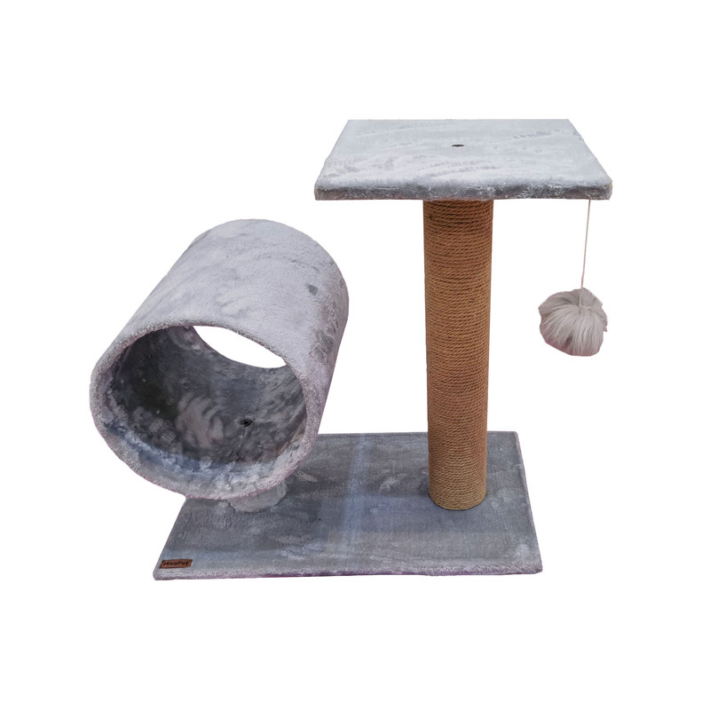 اسکرچرها در طرحهای مختلفی تولید میشوند ولی سادهترین آنها هم بخشی از نیاز گربههای خانگی را برطرف میکند. اسکرچر B32 محصولی دیگر از برند با کیفیت «هیوا پت» میباشد که طراحی خاص و جالبی دارد، یک پایه مستطیلی است که بر روی آن در یک طرف یک استوانه به صورت افقی بر روی یک پایه کوتاه قرار داده شده است، دو طرف این استوانه باز است و امکان جست و خیز و بازیگوشی را به گربه در این قسمت میدهد؛ علاوه بر این میتواند فضایی برای خواب یا استراحت گربه نیز باشد. در طرف دیگر پایه استوانهای بلندتری قرار دارد که اینبار بر روی آن یک صفحه تخت قرار داده شده که این قسمت هم میتواند مکانی برای بازی یا استراحت باشد. از زیر صفحه تخت یک پوم پوم کوچک به منظور یک عروسک آویزی نصب شده است. جنس این اسکرچر از جنس تخته نئوپان ضخیم روکش شده با پارچه پولیشی و نخ کنفی است که نخ کنفی برای پایههای استوانهای استفاده شده تا گربه همراه با کش و قوس آمدن بتواند در ارتفاع های متفاوت پنجه کشی کند. این اسکرچر در چندین رنگ تولید شده تا شما بتوانید رنگی که بیشتر مطابق سلیقهتان است را از بین آنها انتخاب و سفارش دهید.