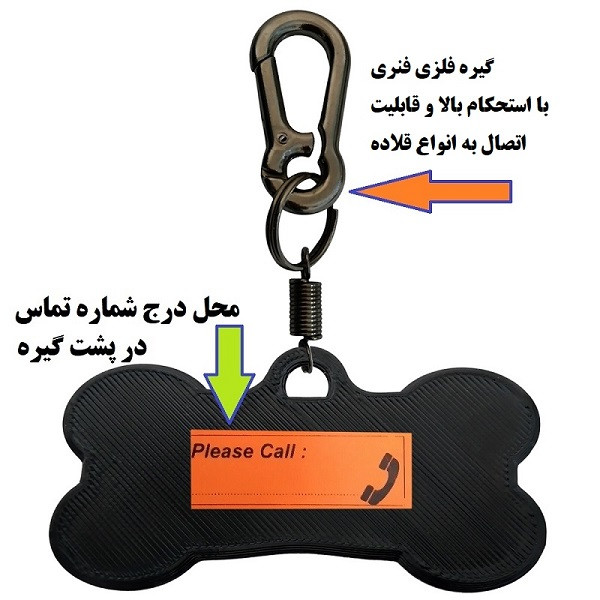 سایر توضیحات : دارای بدنه پلاستیکی منعطف کاملا بهداشتی و ضد حساسیت با قابلیت شستشو و ضد عفونی x دارای گیره فلزی فنری با استحکام بالا و قابلیت اتصال به انواع قلاده x دارای لیبل مخصوص ثبت شماره تماس مالک حیوان در پشت پلاک