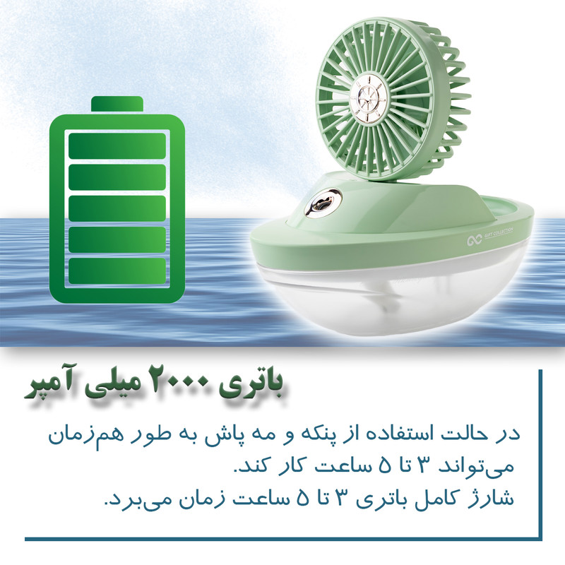 پنکه شارژی گیفت کالکشن مدل aqua ظرفیت 2000 میلی آمپر ساعت