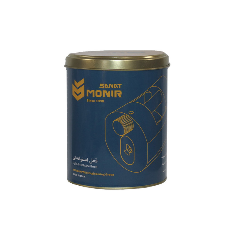 قفل استوانه ای M85 منیرصنعت از فولاد یک تکه ساخته شده که بعد از ماشینکاری تحت عملیات سختکاری قرار میگیرد و باعث میشود قفل دارای سختی سطحی حدود 57 راکول با عمق 0.7 الی 1 میلیمتر شود و در مقابل برش با اره، قیچی یا دریل مقاومت بالایی داشته باشد. از طرفی، همین امر موجب میشود به دلیل نرم بودن لایههای داخلی، در مقابل ضربه نیز استحکام بالایی داشته باشد.