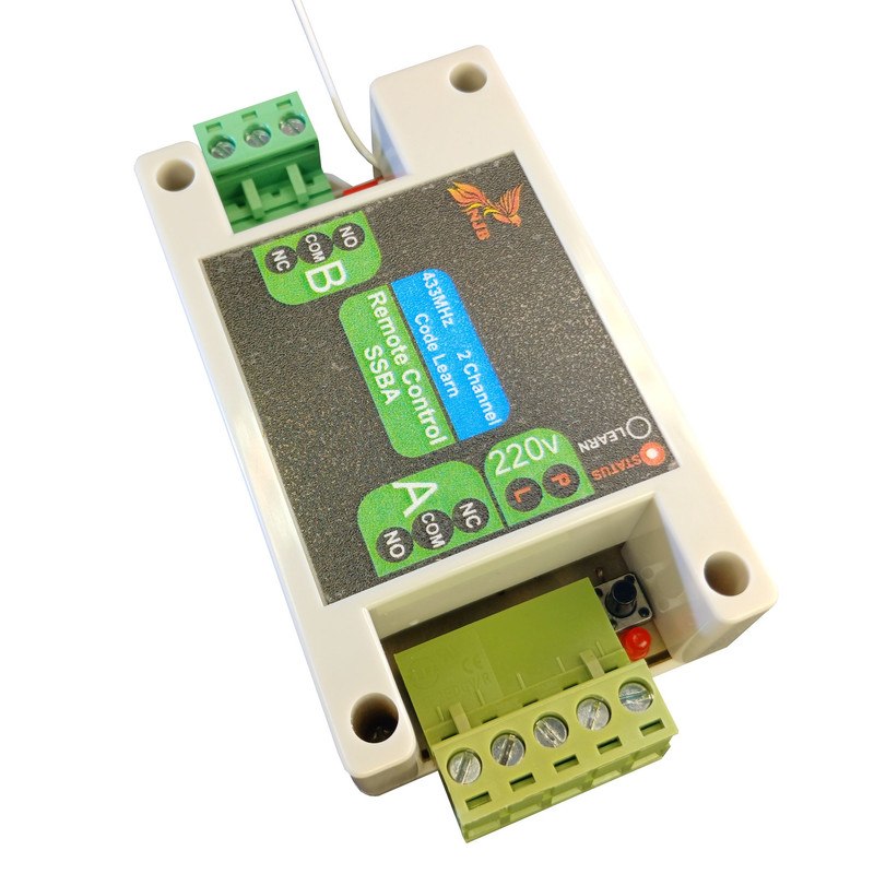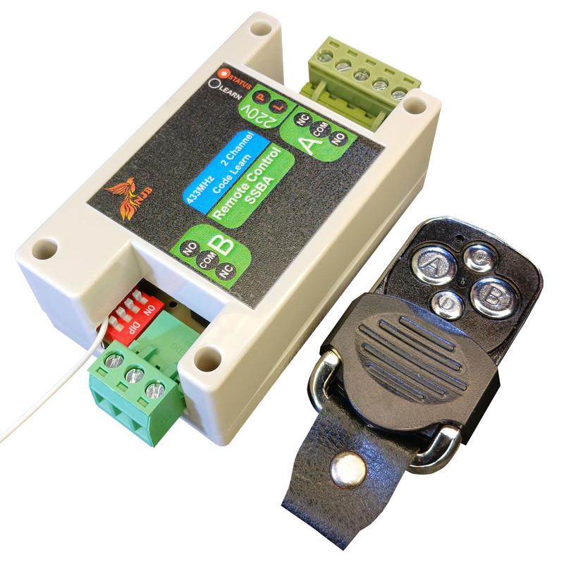 از گیرنده و ریموت کنترل ها به منظور کنترل لوازم برقی در یک محدوده مشخص (معمولا 100 تا 200 متر) استفاده می شود. این محصول یک گیرنده کدلرن 433 مگاهرتزی دو کانال می باشد. از این وسیله می توان برای کنترل طیف کسترده لوازم برقی نظیره لامپ های رشنایی، پنکه، پمپ آب، لوستر و همچنین باز و بسته کردن درب منازل، باغ و ویلاها استفاده کرد. تغذیه دستگاه 220 ولت شهری می باشد و میتواند تعداد 40 عدد ریموت برای دستگاه تعریف کرد. خروجی این این دستگاه می تواند تا جریان 7 آمپر را قطع و وصل کند. دستگاه دارای 4 مد کاری، دزدگیر، حافظه دار، الاکلنگی و لحظه ای می باشد.