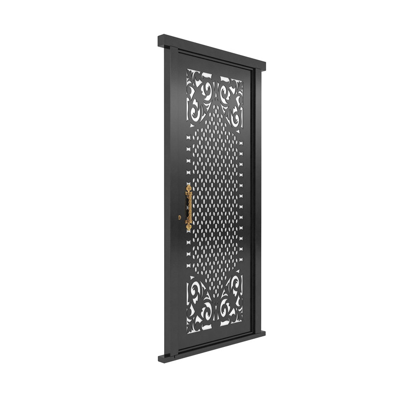 تلفیق قطعات فرفورژه بر روی صفحه فلزی CNC شده، به زیبایی و جلوه درب افزوده است.