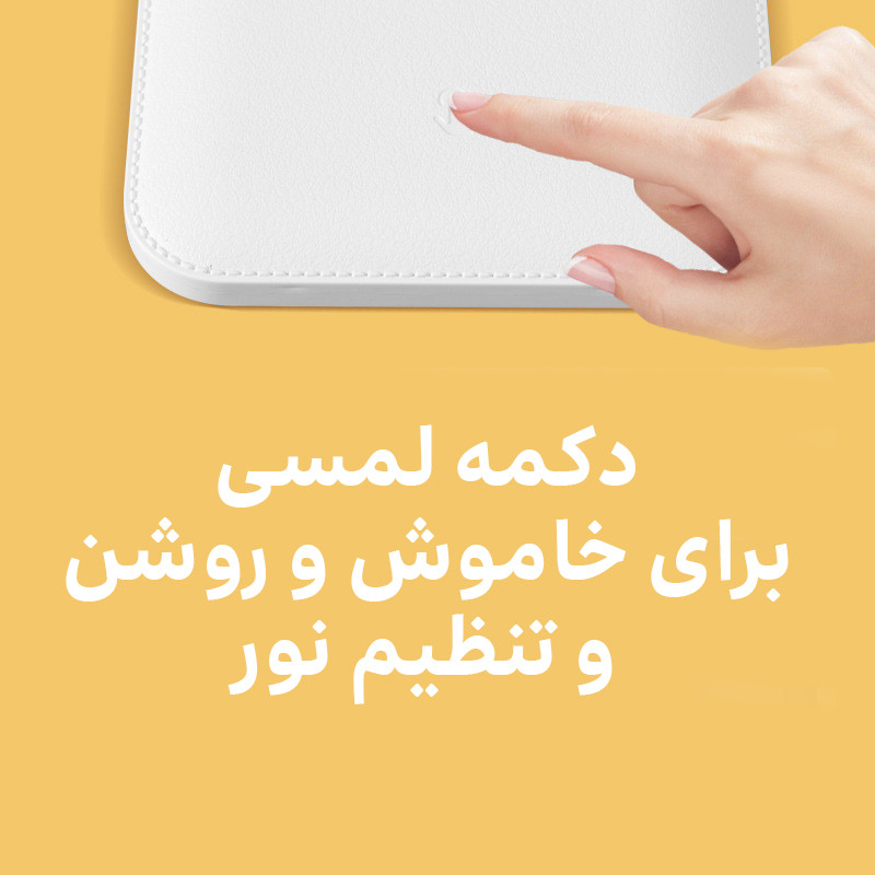 دکمه لمسی / نور سفید, زرد و ترکیبی / دیمر دار برای کم وزیاد کردن نور / شارژی با کابل USB C / لبه نگهدارنده موبایل و تبلت / چرخش 180 درجه لامپ و پایه