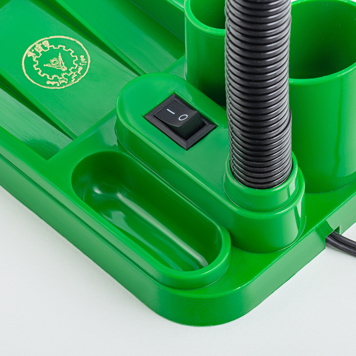 چراغ مطالعه صنایع کریم زاده ساده و در عین حال کاربردی است. در بخش پایهی محصول میتوانید کلید روشن و خاموش را مشاهده کنید که به راحتی قابل دسترس است. همچنین دو محفظه هم روی پایه تعبیه شده است. یکی از این محفظهها از دیگری بزرگتر است و از هر دو میتوانید برای قرار دادن خودکار، ماژیک یا مداد و مواردی از این قبیل استفاده کنید. این چراغ مطالعه مهندسی دارای شش رنگ مختلف با رنگهای خنثی مانند سفید و مشکی یا رنگهای شاد و زنده مانند سبز و صورتی است و به شما اجازه میدهد با توجه به دکور اتاق و سلیقه خود بهترین گزینه را برای خود انتخاب کنید.