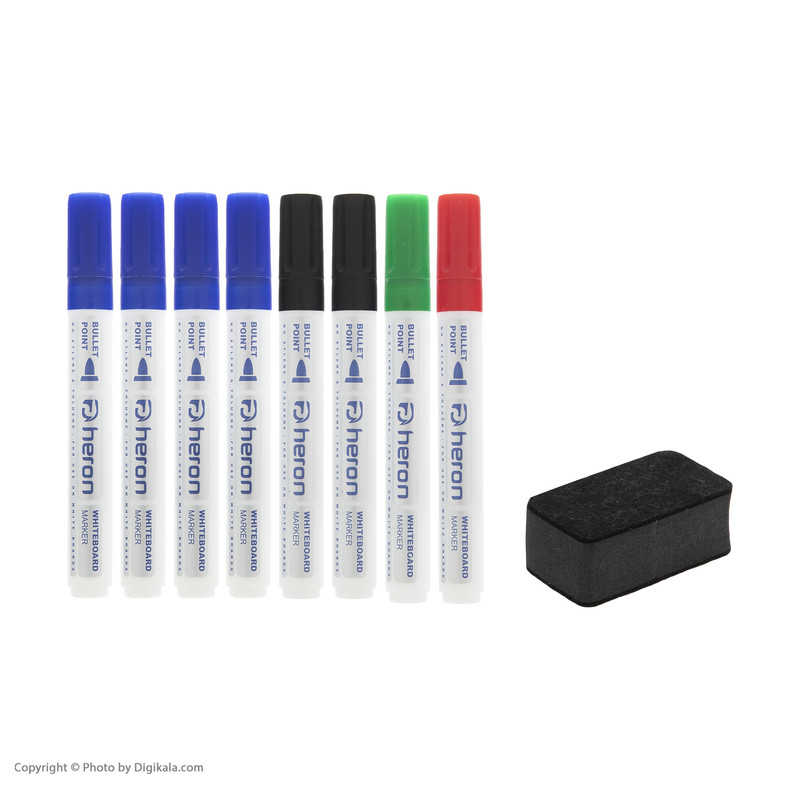 ماژیک وایت برد پلیکان مدل هرون به همراه تخته پاک کن بسته 8 عددی