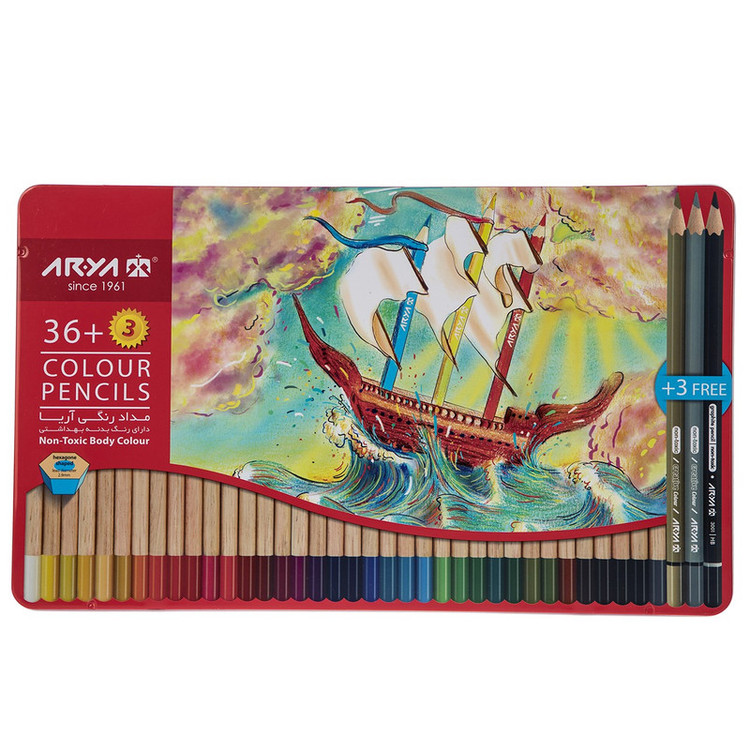 - رنگهای موجود در بستهبندی: 39رنگ (3 + 36) - دارای سه مداد رایگان با رنگهای نقرهای، مشکی و طلایی - با رنگهای درخشان - دارای نوک محکم و مقاوم در برابر شکستن - با قابلیت تراش آسان - غیرسمی - مناسب برای افراد بالای سه سال