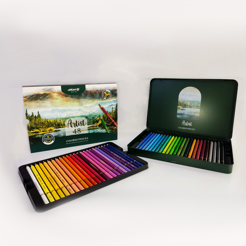 مداد رنگی 48 رنگ آریا آرتیست، انتخابی ایدهآل برای هنرمندان حرفهای، دانشآموزان هنر و علاقهمندان به نقاشی است. این مجموعه در یک جعبه فلزی مقاوم و زیبا ارائه میشود که هم حمل آسان و هم محافظت از مدادها را تضمین میکند. مدادهای این سری دارای مغزی نرم و روان هستند که رنگدانههای غنی و شفاف آنها به راحتی روی انواع کاغذ منتقل میشود. تنوع رنگ بالا، امکان ترکیب طیف وسیعی از رنگها را برای خلق آثار هنری جذاب فراهم میکند. بدنهی ارگونومیک مدادها از چوب با کیفیت ساخته شده و در دست گرفتن آنها حس خوبی به هنرمند میدهد.