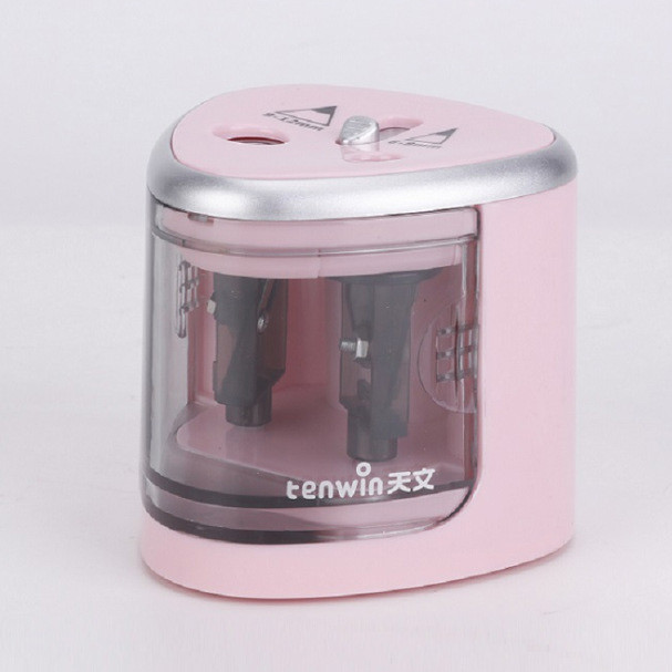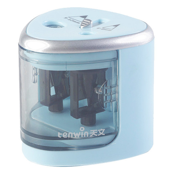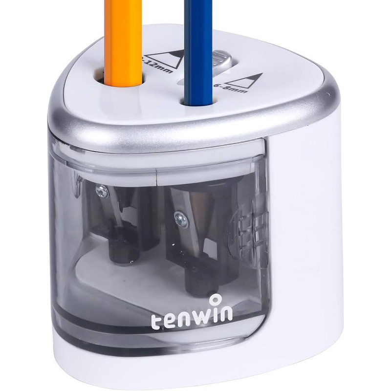 تراش برقی تن وین دارای 2 سوراخ میباشد که برای تراش انواع مداد مناسب است. این تراش با 4 عدد باطری قلمی کوچک سایز AA کار میکند. دارای 2 سوراخ به قطرهای 6-8 میلیمتر و 9-12 میلیمتر است. سوراخ با قطر بزرگتر دارای درپوش ایمنی بوده که با بازکردن درپوش و فشار مداد داخل تراش شروع به کار میکند. تراش تن وین داریا یک مخزن بزرگ میباشد که خرده های تراش خورده مداد را جمع میکند. مداد تراش تن وین برای تراش انواع مداد معمولی، کنته، جامبو، پلی کروم و ... کاربرد دارد. تیغه های تراش بسیار محکم و تیز بوده و با چرخشی که دارند باعث برش و تیز کردن نوک مداد میشوند.این کالا یک هدیه بسیار مناسب برای کودکان و نوجوانان و دانشجو ها میباشد.