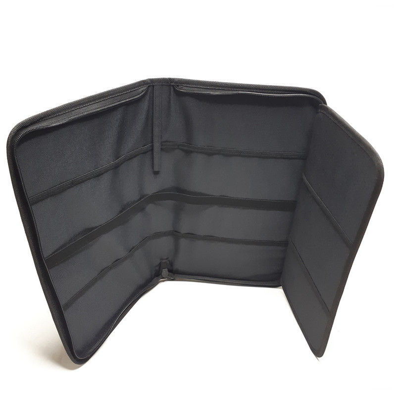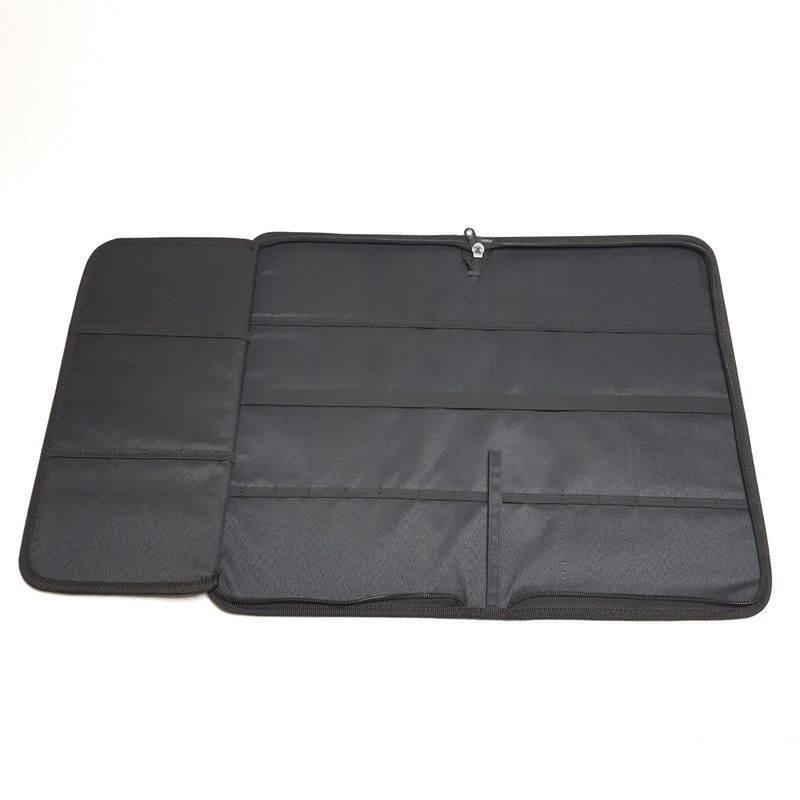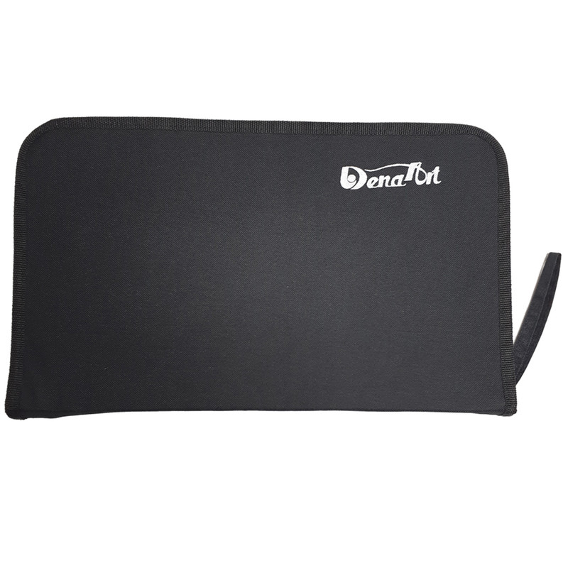 - با طراحی سه تکه - تک زیپ - دارای دسته برزنتی - دارای 21 عدد کش نگهدارنده قلم مو در 2 ردیف - 4 عدد کش بزرگ نگهدارنده قلم مو - 1 عدد جیب داخلی