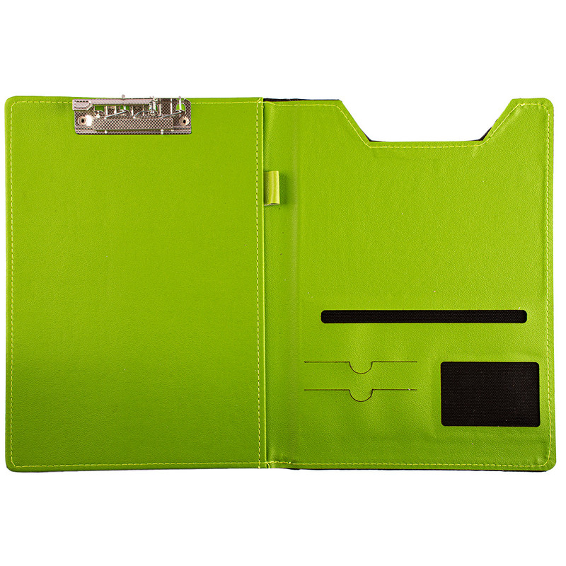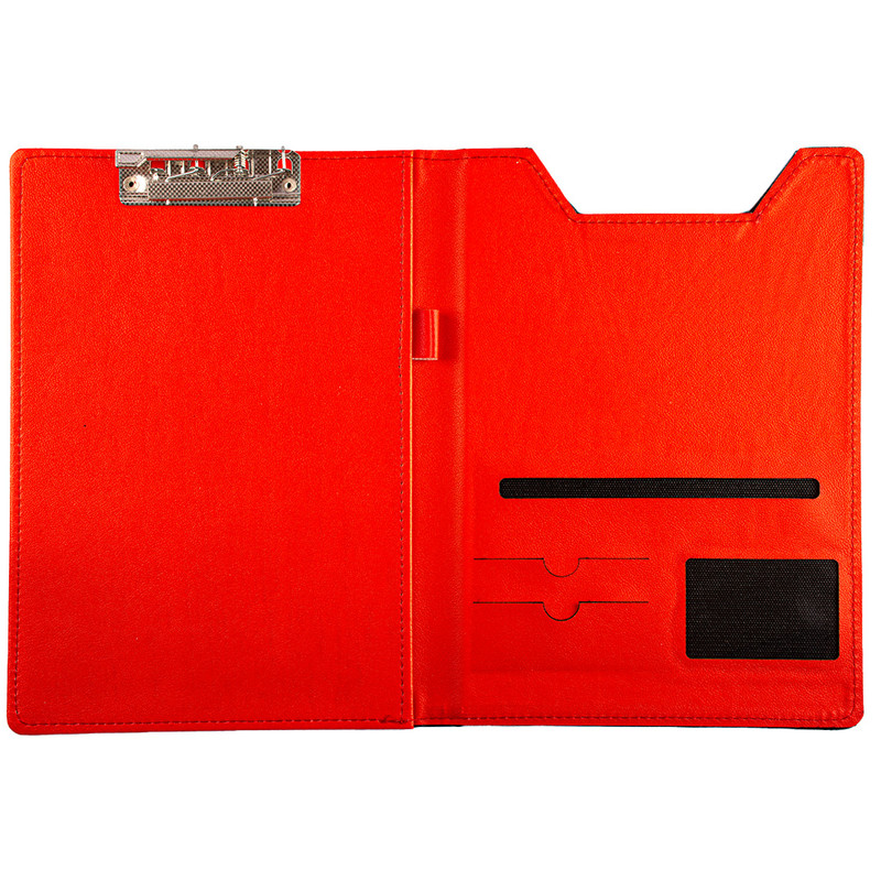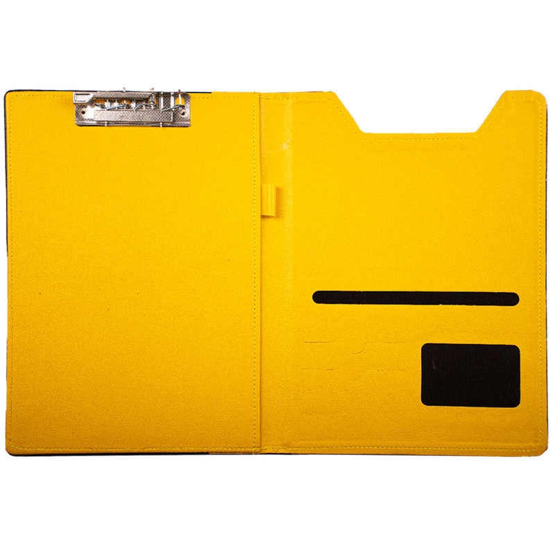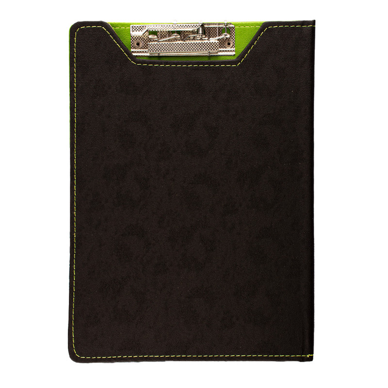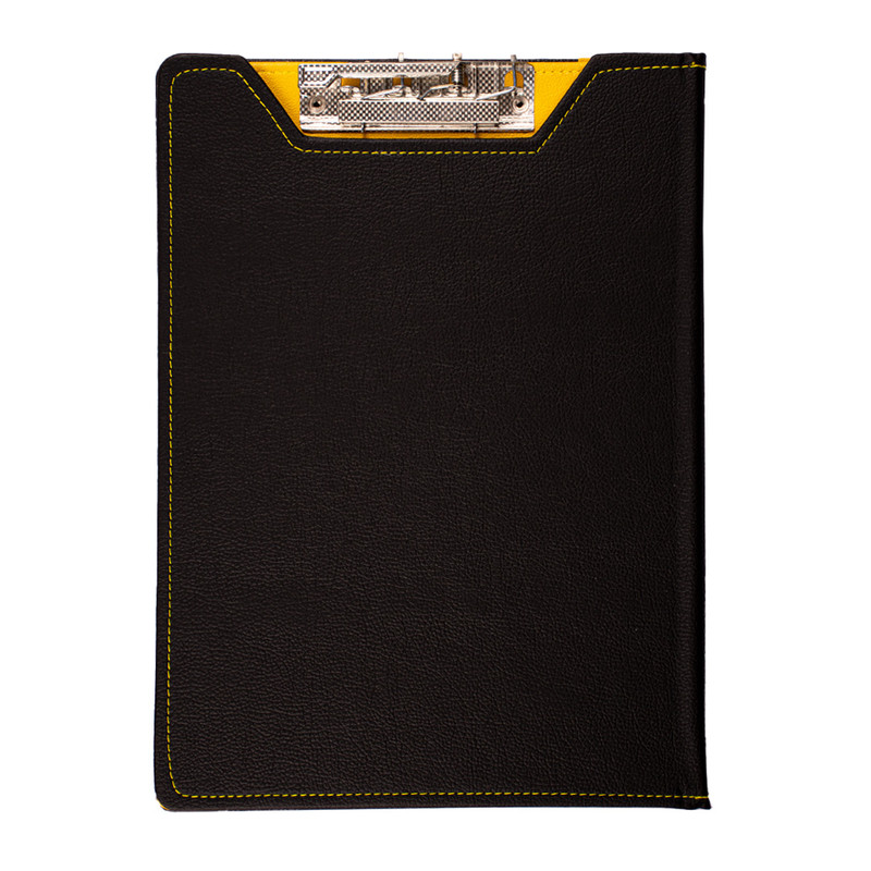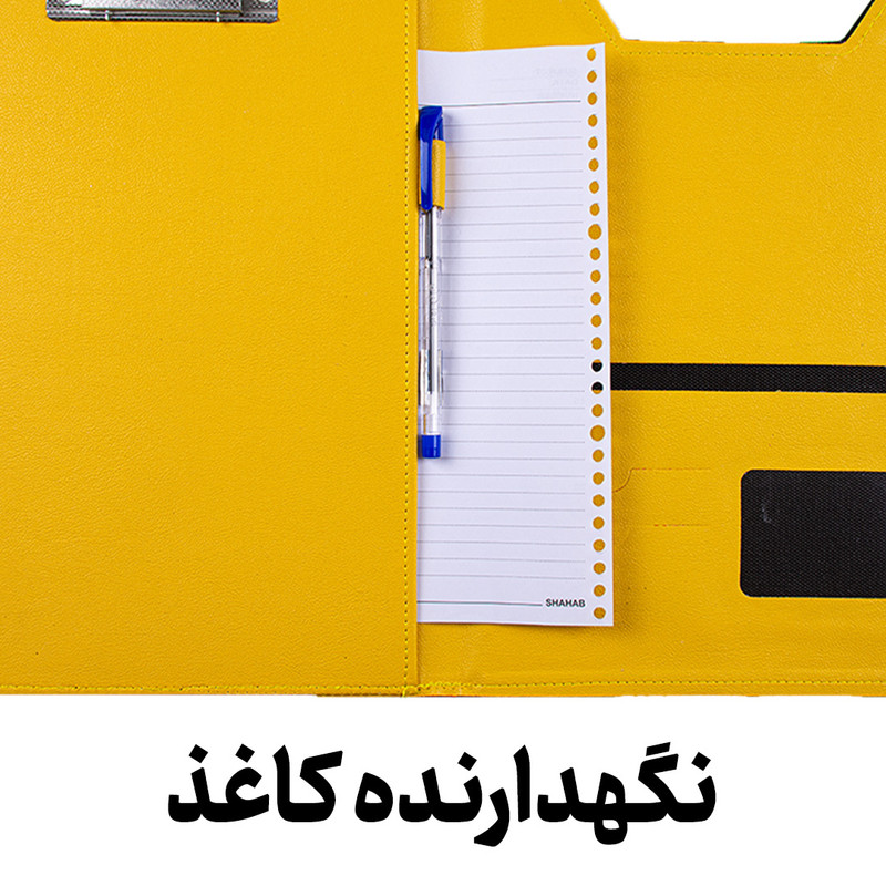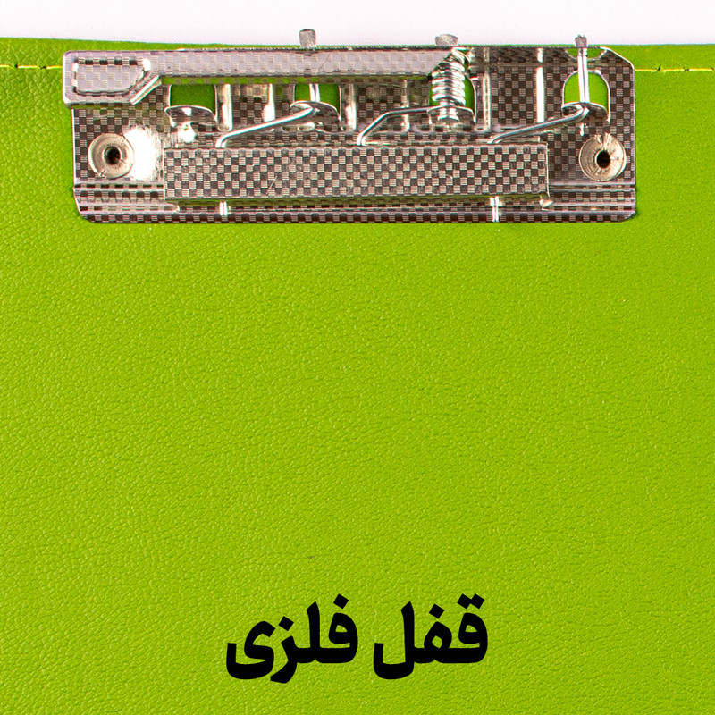 تخته شاسی سایز A4 تهیه شده از جنس چرم مصنوعی کلاسوری(تاشو) که رویه آن از جنس چرم مصنوعی مشکی رنگ بافت دار استفاده شده و داخل آن از جنس چرم مصنوعی رنگی استفاده شده که دارای جیب های متنوع(دو لَت) برای نگهداری کارت، مدارک و ... می باشد. در وسط تخته شاسی محلی برای قرار دادن خودکار قرار داده شده است که در زیر آن محفظه ای برای قرار دادن کاغذ تعبیه شده است . این زیر دستی به طور کامل دور دوخت شده است که در تصاویر به خوبی دیده می شود. این محصول گزینه ی مناسبی برای افرادی است که به طور روزانه و دائم از زیر دستی و تخته شاسی استفاده دارند.