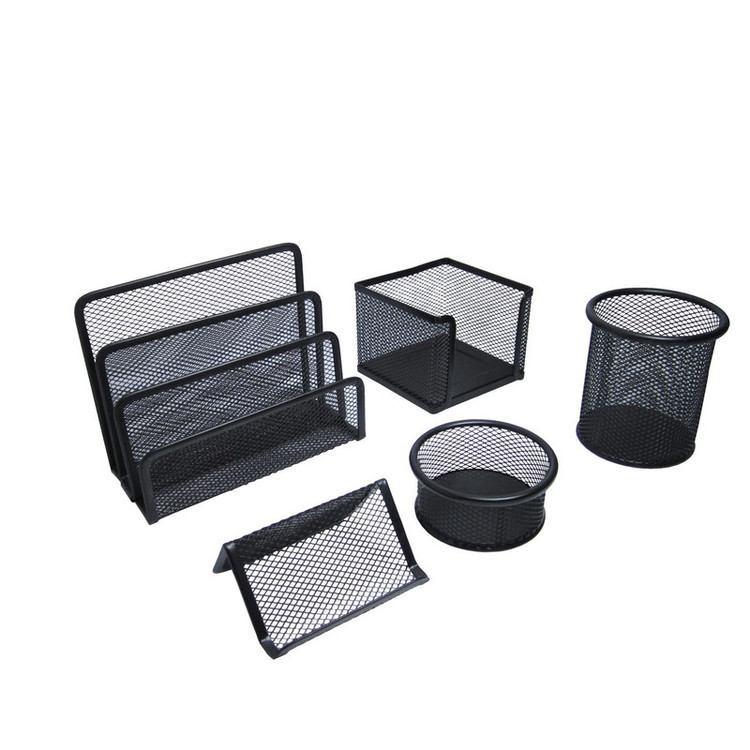 برای انجام امور روزانه و کارهای محول شده باید لوازم مورد نیاز هم در دسترس باشد ، لوازمی مثل خودکار ، کاغذ یادداشت ، پاکت ، سوزن و سنجاق و .... در عین حال مرتب نگه داشتن آنها به تنهایی کار دشواری است و اغلب بدون داشتن یک ست لوازم اداری مناسب، شاید زمان زیادی از شما بگیرد . ستهای اداری میلانو متناسب با کار شما انواع مختلف ست های اداری توری فلزی را ارایه میدهد ،یکی از ویژگی ها ستهای توری فلزی در کنار سبک بودن و دوام بالایی که دارد این است که به واسطه طراحی مدرن و به روزی که دارد با اغلب اقلام اداری دیگر مثل منگنه ، پانچ و حتی میز کارهای اداری کلاسیک به خوبی هماهنگ و ست میشود و به آن میز جلوه خوبی میدهد . ست پنج تکه میلانو کد M051 شامل یک جای یادداشت ، یک جای سنجاق و کلیپس و یک جا قلم به همراه جای پاکت ایستاده و استند کارت ویزیت می باشد . این ست کاربردی مناسب برای افرادی است که میزشان فضای قرار دادن کازیه را ندارند .