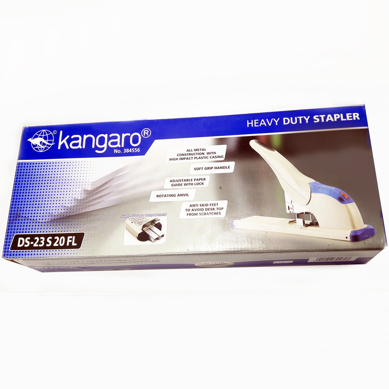 منگنه کانگارو Kangaro DS-23S15FL Heavy Duty Stapler مقاوم در برابر ضربه می باشد. دارای دستگیره نرم و محفظه ذخیره سازی می باشد. این دستگاه دوخت با پایه ضد لغزش مانع از خراشیدن سطح میز می شود. جنس این منگنه تمام فلز با پوشش پلاستیکی است. با قابلیت مکانیزم بارگذاری سریع می باشد. این ماشین دوخت دارای راهنمای قابل تنظیم کاغذ با قفل چرخشی نیز می باشد