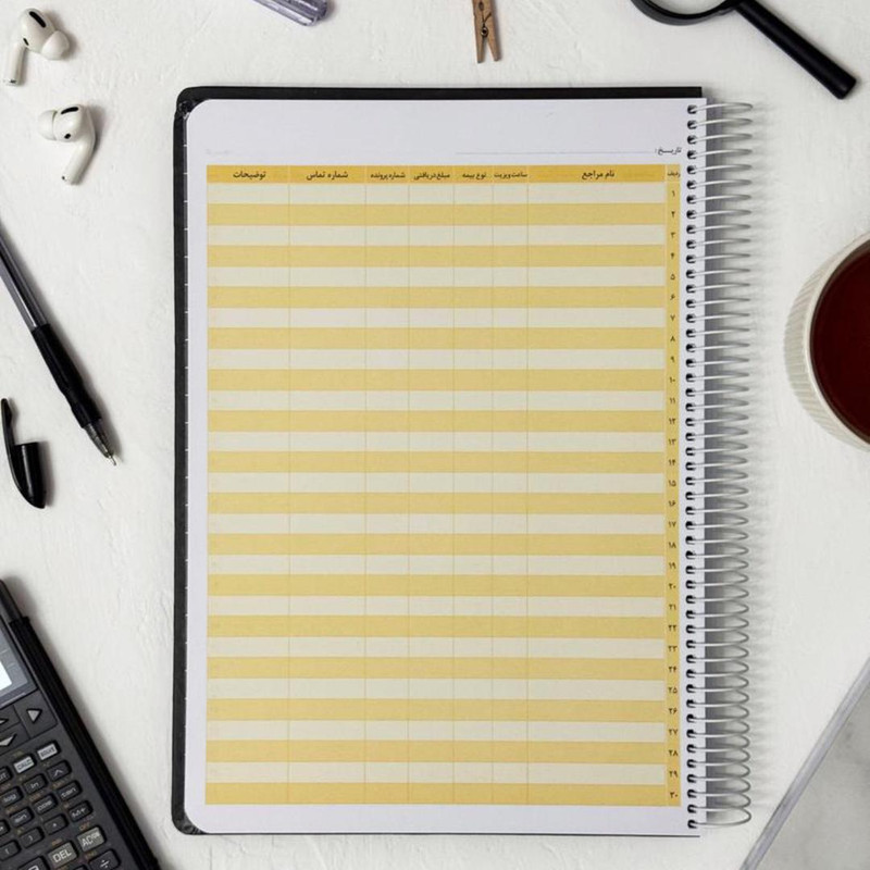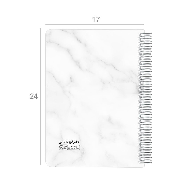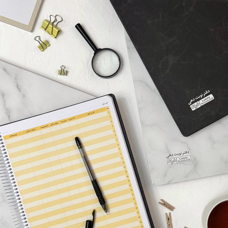 دفتر نوبتدهی دایان با سایز وزیری(17*24) و جلد سخت گالینگور، یک انتخاب ایدهآل برای سازماندهی نوبتها و برنامهریزیهای روزانه است. این دفتر با طراحی زیبا و کیفیت بالای مواد اولیه، به شما امکان میدهد تا به راحتی نوبتهای خود را ثبت و مدیریت کنید. دارای 120 برگ با فضای مناسب برای نوشتن و به دلیل بدون تاریخ بودن آن، به شما کمک میکند تا برای سالهای متوالی از آن استفاده نمایید. جلد سخت آن و صحافی فنری، دوام و استحکام بالایی را تضمین میکند و به راحتی در کیف یا روی میز قرار میگیرد. طراحی ساده و کاربرپسند این دفتر، استفاده از آن را برای تمامی سنین راحت میسازد. با دفتر نوبتدهی دایان، همیشه یک قدم جلوتر از برنامههای خود باشید و به راحتی زمانبندیهای خود را مدیریت کنید. این محصول، گزینهای مناسب برای استفاده شخصی و حرفهای است.