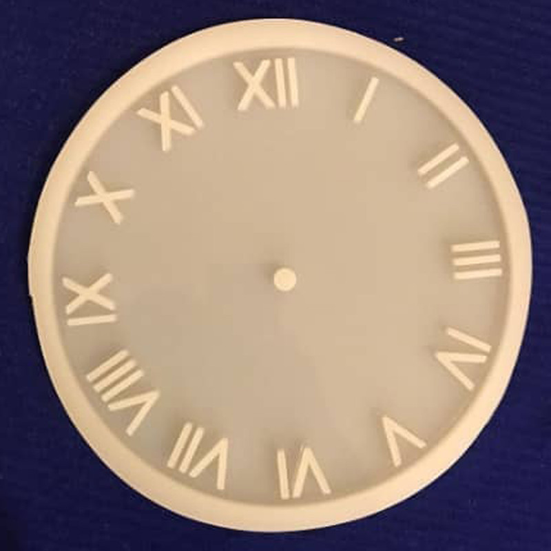 این مدل قالب برای تولید ساعت به قطر 30 سانتی متر مناسب می باشد. جای حروف و قسمت وسط دایره به شکل توخالی در می اید. که برای نصب موتور ساعت کار تولید را بسیار ساده می کند.