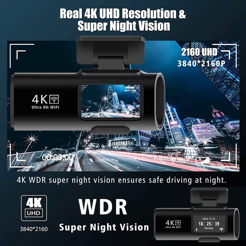دوربین ثبت وقایع خودرو مدل OK309-4K وایفای دار یک راهکار جامع برای حفاظت و نظارت بر خودروی شماست. این دوربین با رزولوشن 4K برای جلو و 1080P برای عقب، امکانات پیشرفتهای از جمله دید در شب، حسگر G-Sensor، ضبط چرخشی، و اعلان صوتی ارائه میدهد. دوربین جلو با لنز 6 لایه، زاویه دید 170 درجه و فناوری WDR/HDR، تصاویری شفاف و باکیفیت حتی در شرایط نوری ضعیف ثبت میکند. دوربین عقب با قابلیت ضدآب، حوادث پشت خودرو را حتی در هوای بارانی ثبت میکند. قابلیت اتصال WiFi و اپلیکیشن موبایل اندروید و آی او اس (Viidure) امکان مشاهده زنده تصاویر، دانلود ویدئوها و تغییر تنظیمات را فراهم میکند. ویژگی ضبط چرخشی، ویدئوهای قدیمی را بهطور خودکار جایگزین کرده و حافظه را مدیریت میکند. حسگر G-Sensor در هنگام تصادف فعال شده و ویدئوهای مهم را قفل میکند تا از حذف شدن محافظت شوند. اعلان صوتی دستگاه، وضعیتهای مهم مانند شروع و توقف ضبط یا تغییر تنظیمات را اعلام کرده و نیازی به نگاه کردن به صفحهنمایش را از بین میبرد، که ایمنی راننده را افزایش میدهد. این دوربین از کارت حافظه تا ظرفیت 64 گیگابایت پشتیبانی کرده و به شما امکان ضبط طولانیمدت ویدئوها را میدهد. نصب دوربین ساده بوده و دوربین جلو به شیشه جلو و دوربین عقب به پشت خودرو متصل میشود. اتصال به منبع تغذیه از طریق کابل فندکی همراه دوربین انجام میشود. اپلیکیشن دستگاه از طریق iOS و Android در دسترس است و امکان اتصال و مدیریت آسان را فراهم میکند. دوربین OK309-4K با طراحی جمعوجور و ویژگیهای متنوع، گزینهای ایدهآل برای رانندگان حرفهای و علاقهمندان به امنیت خودرو است. ** کارت حافظه میبایست جداگانه تهیه شود. **