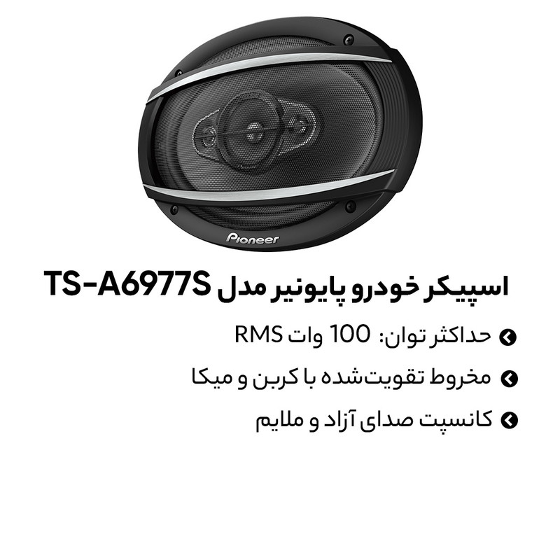 بلندگوی TS-A6977S از محصولات شرکت پایونیر است که از یک ووفر، یک میدرنج، یک عدد تیوتر و یک عدد وپرتیونر تشکیل شده است.نوع این بلندگو بیضی بوده و ابعاد این بلندگو 17x9x14 سانتیمتر بوده و وزن آن 4 گرم است. بلندگو TS-A6977S جایگزین مدل 6966S و 6965S شرکت پایونیر خواهد بود. بلندگوی TS-A6977S یکی از بهترین گزینههای شرکت پایونیر برای استفاده در سیستمهای ساده و بدون آمپلی فایر است. این بلندگو بیس مناسبی به مخاطب خود میدهد و برای ماشینهایی مانند پژو در کنار 1651 ( در داخل دربهای جلو) گزینه مناسبی برای استفاده است. بیشینه صدای خروجی این دستگاه 650 وات است. این بلندگو دو عددی است و سایز آن 6 × 9 اینچ خواهد بود. عمق نصب برای این دستگاه 90 میلیمتر بوده و فرکانس پاسخگویی آن بین 22 الی 24000 هرتز است.