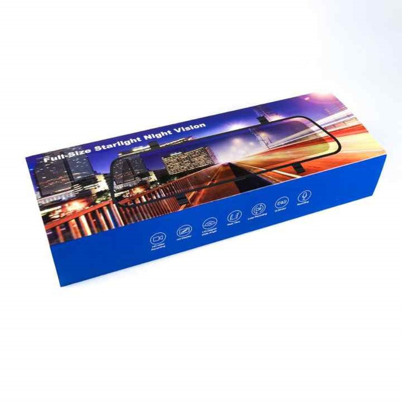 این محصول که در قالب یک آینه خودرو با مانیتور 12 اینچ تمام لمسی طراحی شده است، یک آینه باشیشه مخصوص برای شکست شدت نور خودروهای عقبی و راحتی چشم در شب می باشد و تنها وجه تمایز آن با سایر دوربین ها وجود مانیتور 12 اینچ تمام تاچ آن می باشد که کمپانی سازنده برای راحتی کار این مانیتور را داخل خود آینه طراحی و جانمایی کرده است. از قابلیتهای این محصول دوربین اصلی آن است که با لنز 6 لایه و با کیفیت فول اچ دی برای تصویربرداری از جلوی خودرو و یک دوربین با کیفیت فول اچ دی و لنز 6 لایه دید در شب برای عقب خودرو که در حالت دنده عقب نیز مانیتوریگ می نماید میتوان اشاره نمود. این دوربین خودرو دارای دستگاه DVR مرکزی است که در خود آینه طراحی و جانمایی گردیده است و به طور خودکار شروع به ضبط وقایع و تصاویر جلو و عقب خودرو به صورت مداربسته با کیفیت FULL HD می نماید و باتوجه به قابلیت اتصال رم ضبط تصاویر را برای شما امکان پذیر می نماید. باتوجه به امکان عکس برداری با کیفیت 5 مگاپیکسل قابلیت ثبت عکسهای با کیفیت را برای شما فراهم می کند. این محصول علاوه بر سیستم پارکینگ کنترل که قابلیت ضبط هوشمند را دارد (ضبط خودکار تصاویر در صورت تشخیص حرکت نزدیک به خودرو در زمان پارک و خاموش بودن خودرو). از سیستم Motion detection نیز پشتیبانی می نماید. این تکنولوژی را می توان هوشمندانه ترین سیستم در طراحی این قبیل دوربین ها دانست که در صورتی که این خودرو خاموش و در حالت پارک رها شده باشد محصول در صورت حرکت مقابل دوربین خودرو به صورت کاملاً اتوماتیک روشن شده و شروع به ضبط صدا و تصاویر دوربین های جلو و عقب می نماید. این امر به شما کمک می کند تا در صورتی که خودرو خود را ترک کردید و در این هنگام اتفاقی مثل تصادف، ضربه، یا حتی کشیدن خطوط بر روی بدنه خودرو شما رخ دهد دستگاه با تشخیص حرکت به صورت اتوماتیک روشن شده و از اتفاقات رخ داده به صورت مخفیانه تصویر برداری خواهد کرد. محصول فوق قابلیت نصب بر روی انواع خودروهای سبک و سنگین را با توجه به مبدل 12-24 ولت دارد و در کل باید گفت که بهترین و کاربردی ترین وسیله برای ثبت وقایع و مناظر و خاطرات خوش سفرهای جاده ای با کیفیت بسیار بالای صدا و تصویر می باشد.قابلیت پشتیبانی مموری کارت تا حجم 32 گیگابات را دارد.