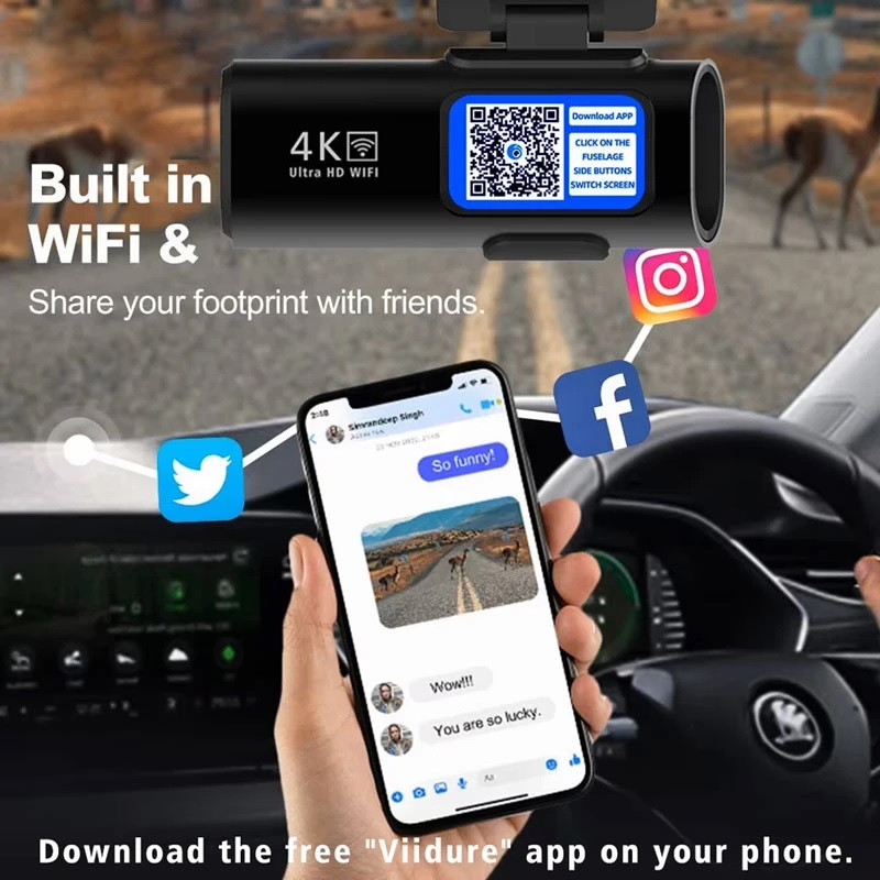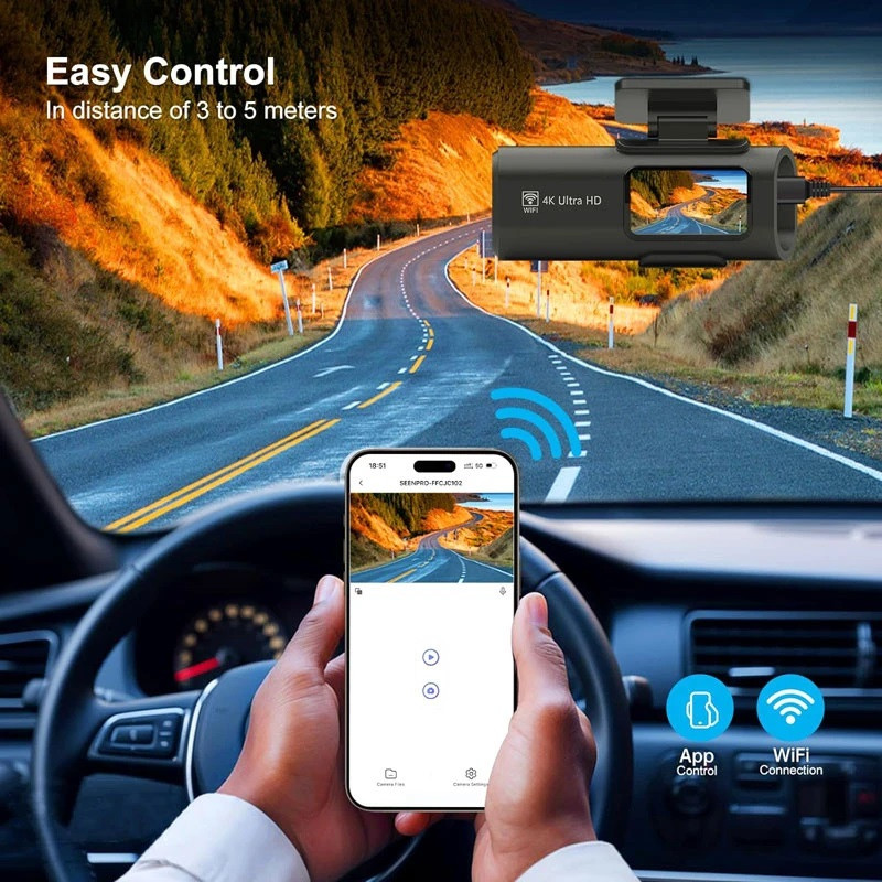 دوربین فیلمبرداری ثبت وقایع خودرو مدل OK309-4K-WiFi-GPS به همراه دوربین عقب