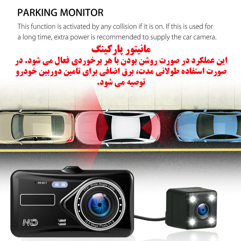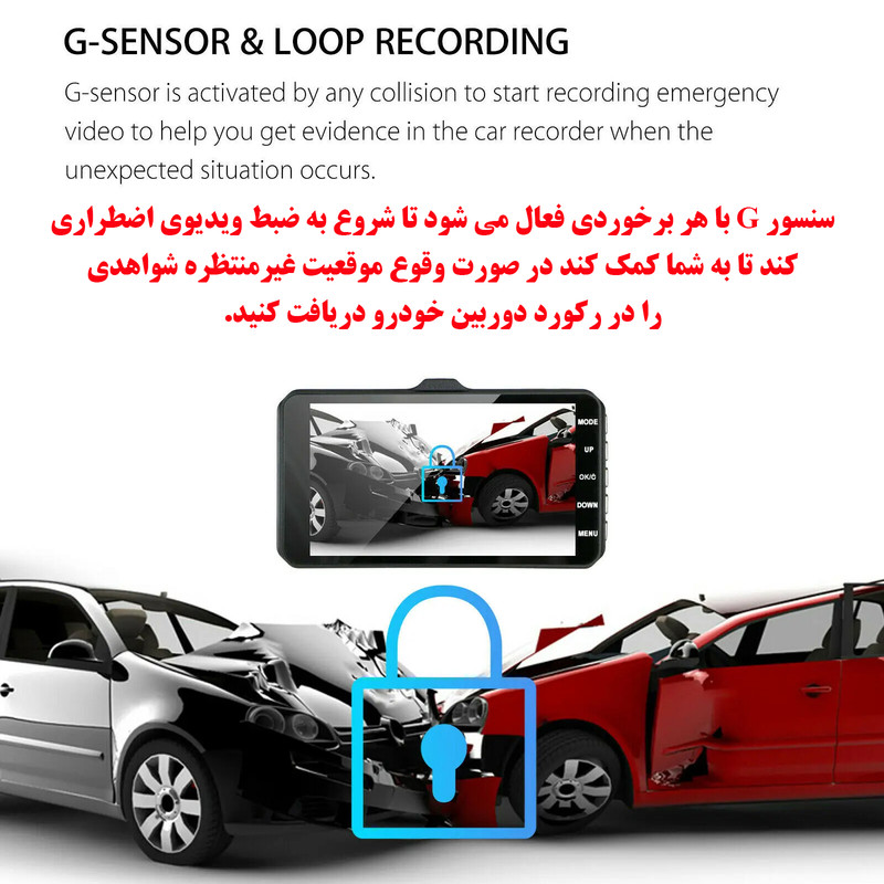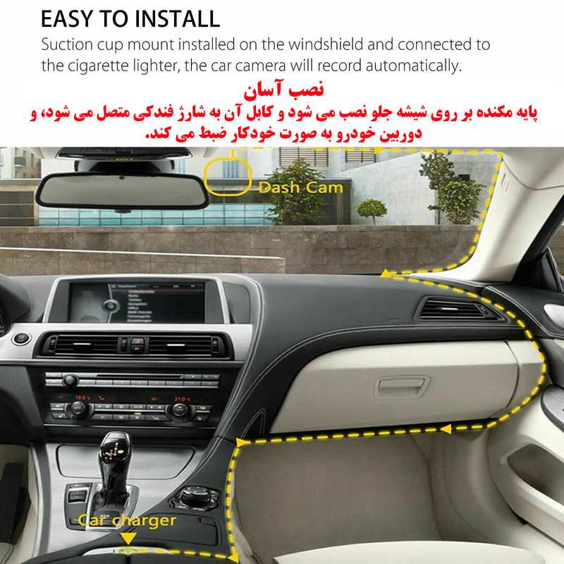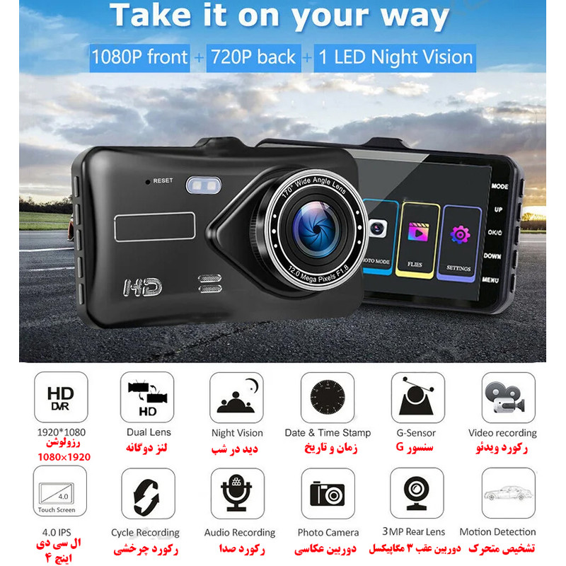 دوربین داشبورد می تواند به طور همزمان جلو و داخل خودرو را با ویدئو و صدا 1080P ضبط کند. دوربین داشبورد می تواند شواهد ویدئویی واضح و واضحی را در صورت تصادف یا اختلاف در حین رانندگی ارائه دهد. ضبط حلقه زمانی که کارت پر است، قدیمیترین ویدیوها را بازنویسی میکند و مطمئن میشود که دوربین داشبورد ضبط مداوم، سنسور g داخلی فیلم تصادف اضطراری را قفل میکند و از رونویسی آن جلوگیری میکند. ضبط رانندگی به راحتی روی شیشه جلوی پایه قرار می گیرد. اشکال مخفی کوچک، دید راننده را منحرف نمی کند. بدون نیاز به تنظیمات زیاد، وصل و پخش کنید.