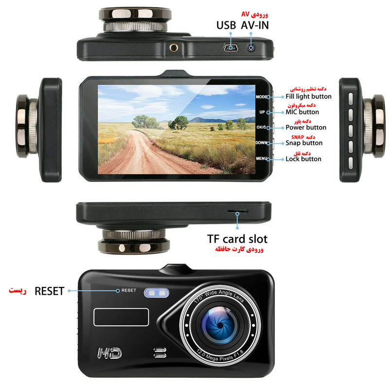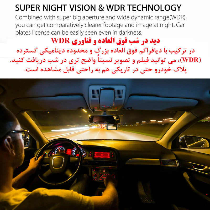 دوربین خودرو دو لنزه دید در شب F9 دارای سنسور هایی از قبیل سنسور حساس به حرکت ،G-sensor ،مد پارکینگ و قابلیت دید در شب می باشد. دوربین خودرو دو لنزه دید در شب F9 یکی از پرفروش ترین مدل های در بازار اروپا به شمار می آید. همان طور که در تصویر می بینید با استفاده از پایه هایی که دارای پسب دو طرفه هستند می توانید آن به شیشه بالای آیینه نصب کنید. دوربین با زاویه دید 170 درجه در وسط پایه های قرار دارد که تصویر جلو خودرو را ضبط خواهد کرد. این دوربین جلو قابلیت تغییر زاویه را به صورت دسته دارد که به نسبت ارتفاع خودرو می توانید در بهترین زاویه آن را تغییر دهید. در روی دوربین 2 لنزه خودرو دید در شب دکمه های دسترسی قرار گرفته اند. همچنین ورودی SD کارت نیز در همان قسمت تعبیه شده است. این دوربین به ورودی صدا نیز مجهز است که میکروفون آن نیز به صورت سرخود طراحی شده است. دوربین خودرو دو لنزه دید در شب F9 با سنسور دید در شب حساسیت به نور کم را بهبود می بخشد و امکان تصویربرداری واضح در محیط های کم نور را فراهم می کند. ترکیب دیافراگم بزرگ F1.8 و لنز 6 شیشه ای، فناوری حرفه ای WDR ، HDR وضوح تصاویر را در شب تضمین می کند. نیاز به منبع نور کمکی را حتی در محیط های کم نور برطرف می کند ، پلاک خودرو به راحتی قابل مشاهده است.