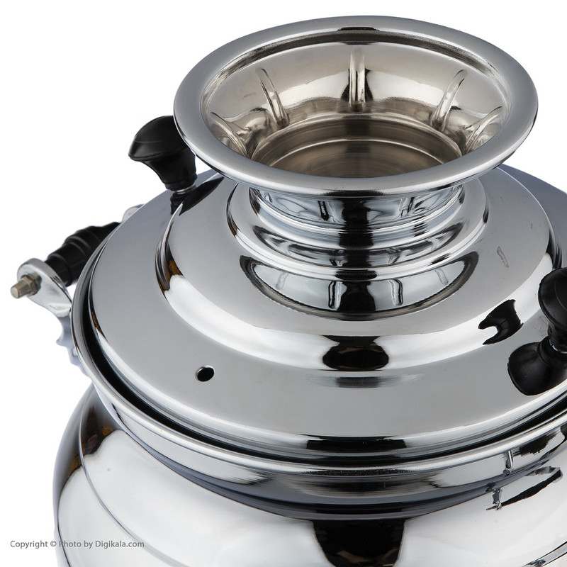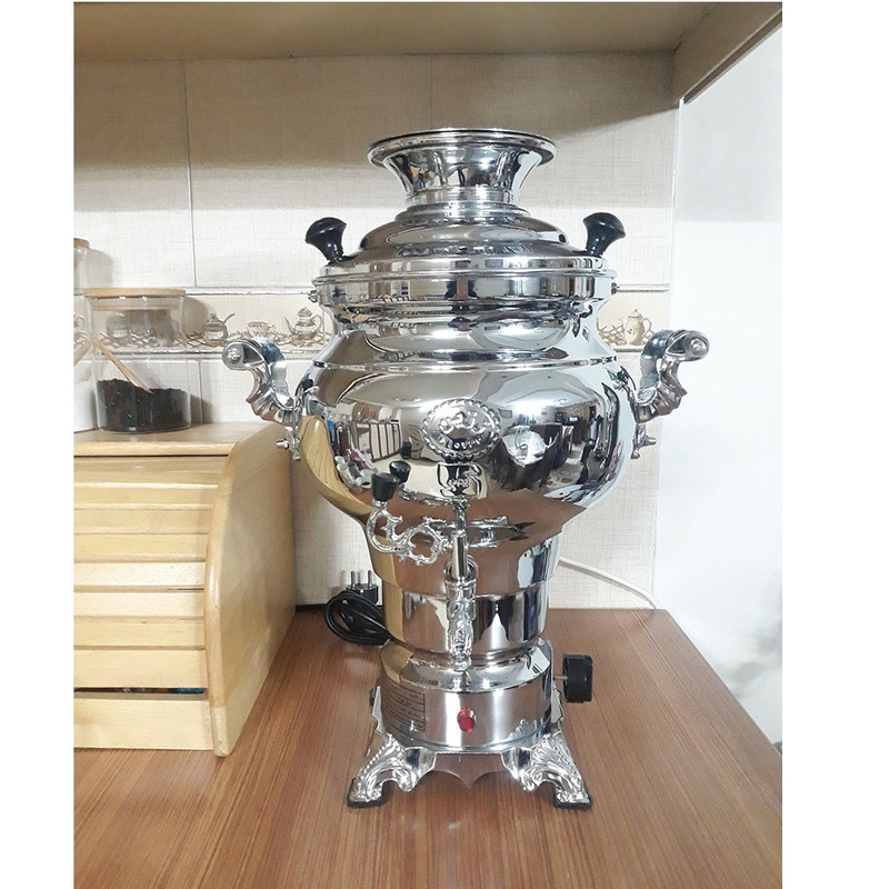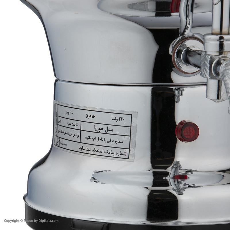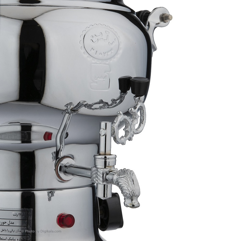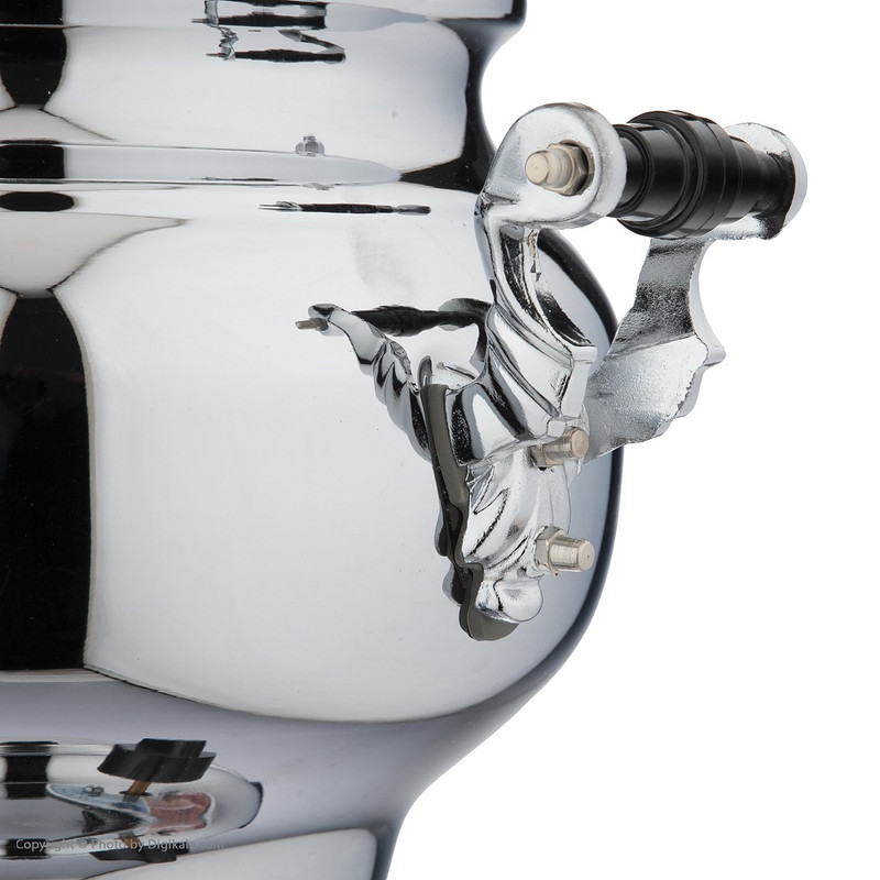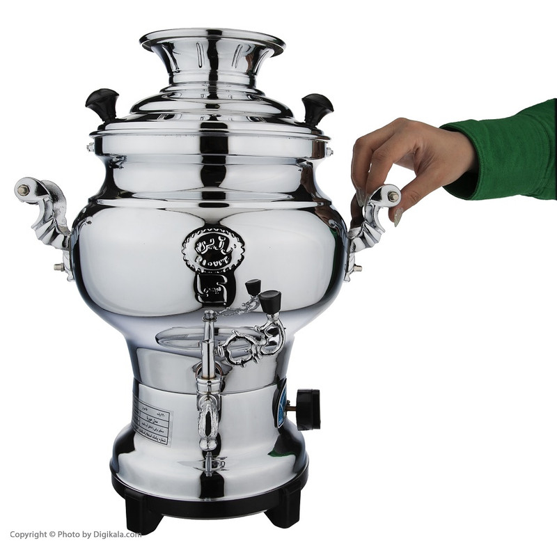 سماور برقی زرین با ظرفیت 6 لیتر ساخته شده از ورق برنجی B70-0/8 مجهز به پلیمر از جنس باکالیت (مقاوم در برابر حرارت) است. این سماور دارای ایمنی بسیار بالا است و مجهز به ترموستات هیدرولیک و قطع کن ایمنی خودکار است. به همین دلیل در صورت اتمام آب، سماور به صورت اتومات خاموش خواهد شد. دقت کنید سماورهای خارجی ظرفیت بالایی ندارند پیشنهاد میکنیم برای پذیرایی در جشن ها و میهمانی های خود حتما سماور برقی ایرانی بخرید که بر اساس نیاز ایرانی ها ساخته شده است و ظرفیت مناسبی دارند.