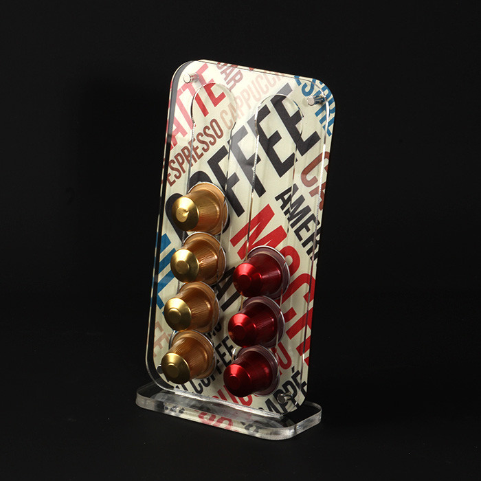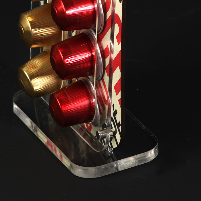 دستگاه های قهوه کپسولی نسپرسو مورد استقبال مردم قرار گرفته و بخاطر تنوع بسیار در نوع کپسول نیاز به نگهدارنده و رگال کپسول میباشد نگهدارنده کپسول مدل 6091 دارای 2 شیار جهت قرار گیری 12 کپسول می باشد .همچنین این استند به راحتی از پایه جدا شده و قابلیت نصب روی درب یخچال را دارد وجود مگنتهای استیل باعث شده که در این استند از هیچگونه پیچ استفاده نشود. قسمت طرح دار پشت کار چاپ مستقی روی چوب بوده و در بابر خط وخش مقاوم است .