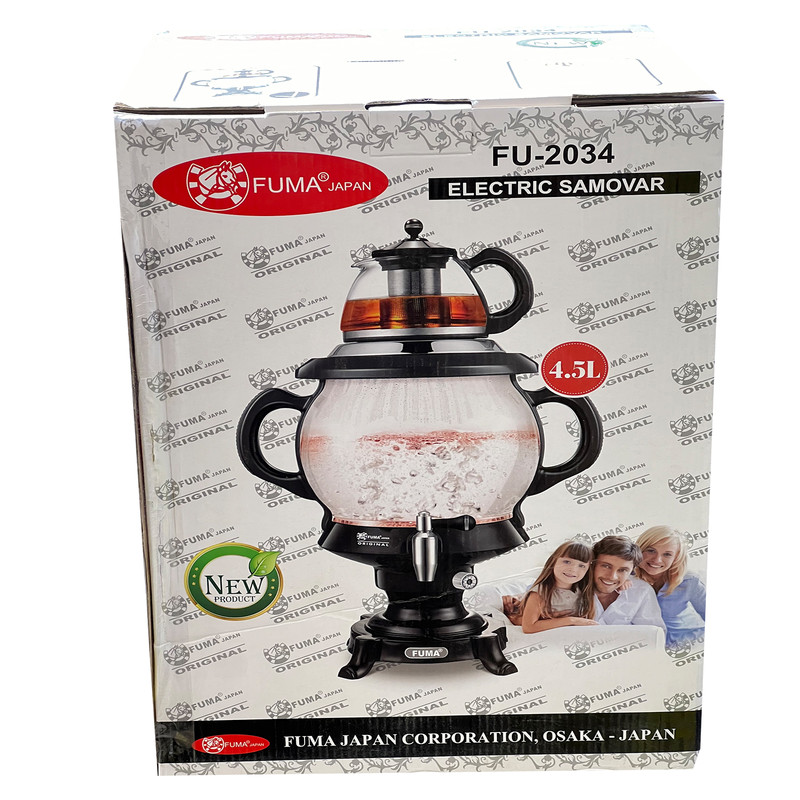 شرکت فوما یکی از قدیمی ترین برند های ژاپنی می باشد که کیفیت ساخت بالایی دارد این سماور برقی دارای مخزن پیرکس فوق العاده با کیفیت 4/5 لیتری ساخته شده است و دارای led خوش رنگ آبی و قرمز هنگام روشن شدن سماور در آن تعبیه شده است این سماور دارای ترموستات نیز می باشد در هنگام به جوش آمدن قطع می شود این سماور دارای ترموسوییچ نیز می باشد که در هنگام نبود آب قطع می شود المنت سماور از نوع استتار کی ژاپنی تمام استیل می باشد که کیفیت ساخت و دوام بالایی دارد