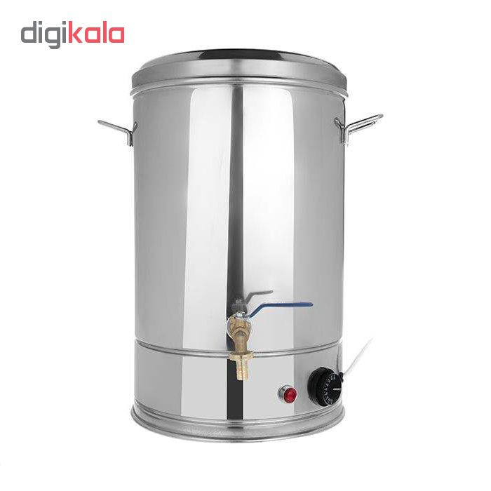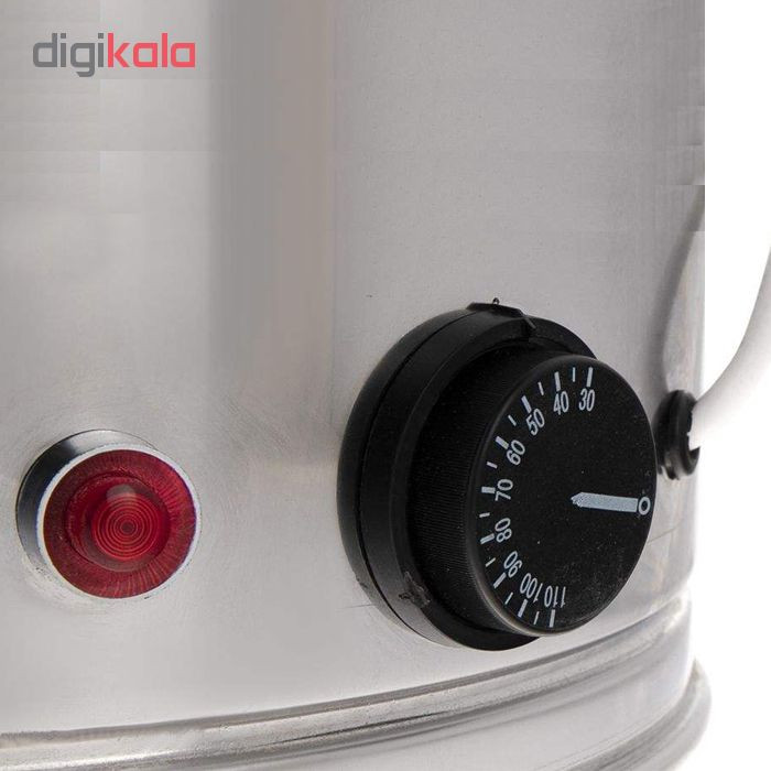 اگر قصد تهیه سماور برقی با گنجایش بالا دارید، یکی از گزینههایتان تهیه سماور برقی صنعتی است. این سماور دارای گنجایش 15لیتری بوده و برای مراسمها بزرگ مذهبی، همایش ها و گردهمایی ها کارایی بالایی دارد. جنسی که برای این مدل در نظر گرفته شده استیل است. استفاده از این جنس باعث شده تا ماندگاری و طول عمر سماورتان افزایش یابد. بر روی این سماور دو دستگیره قرار دارد. با استفاده از این دستگیره جابهجایی سماور آسانتر میشود. یکی از ویژگیهای سماور برقی صنعتی سیم 150 سانتیمتری است. بر روی این سماور دکمه چرخشی جهت تنظیم دما قرار گرفته است. شما قادرید دمای سماور را از 30 تا 110 درجه تنظیم کنید و با رسیدن دمای مایع به درجه مورد نظر، دستگاه به طور اتوماتیک خاموش می شود و از آسیب رسیدن به سماور جلوگیری می کند. همچنین برای افزایش طول عمر سماور همواره از وجود آب داخل مخزن اطمینان حاصل کنید.