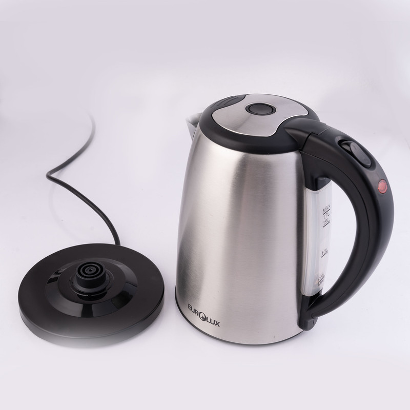 با استفاده از کتری برقی میتوان به راحتی و بدون اتلاف انرژی انواع چای و دمنوش را آماده کرد.کتری برقی بسیار سریعتر از کتری معمولی یا سماور میتواند آب را به نقطه جوش برساند و ازین نظر در میان مصرف کنندگان بسیار پرطرفدار شده است. کتری برقی یورولوکس مدل EU-EK2843DSB، یکی از باکیفیت ترین کتری های موجود در بازار با توان 2200 وات و گنجایش 1.7 لیتری می باشد. در طراحی بدنهی این محصول از استیل و پلاستیک مقاوم استفاده شده است. دارای دکمه روشن/خاموش و تکنولوژی خاموشی خودکار هنگام کم بودن آب درون کتری است و همچنین دارای نشانگر LED است که زمان جوشیدن آب را نشان می دهد و پس از اتمام گرمایش به طور خودکار خاموش می شود. همچنین کتری دارای دهانه 4.3 اینچی و دکمه لمسی آزاد کردن درب می باشد که به راحتی می توان آن را از آب پر کرد و در صورت نیاز شست و شو نمود. طراحی دسته ارگومونیک و عایق است و به هیچ وجه گرمای کتری به دست شما منتقل نمی شود. این کتری همچنین دارای محفظه جمع آوری سیم و پایه ضد لغزش است که استفاده از آن را راحت می کند. با توجه به ویژگی های ذکر شده، کتری برقی یورولوکس مدل EU-EK2843DSB می تواند پاسخگوی نیاز شما در آشپزخانه یا دفترکارتان باشد.