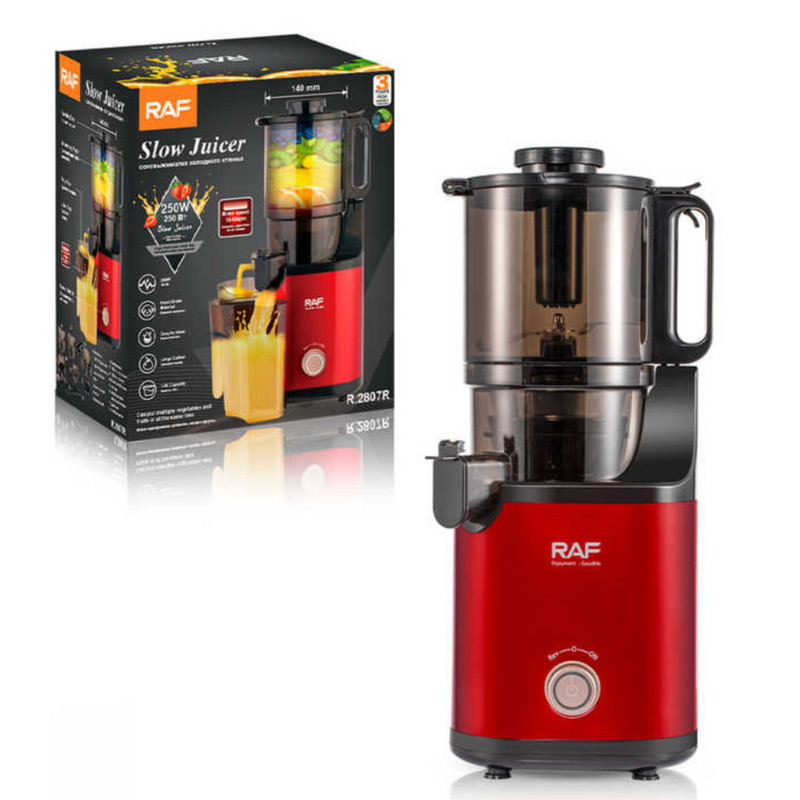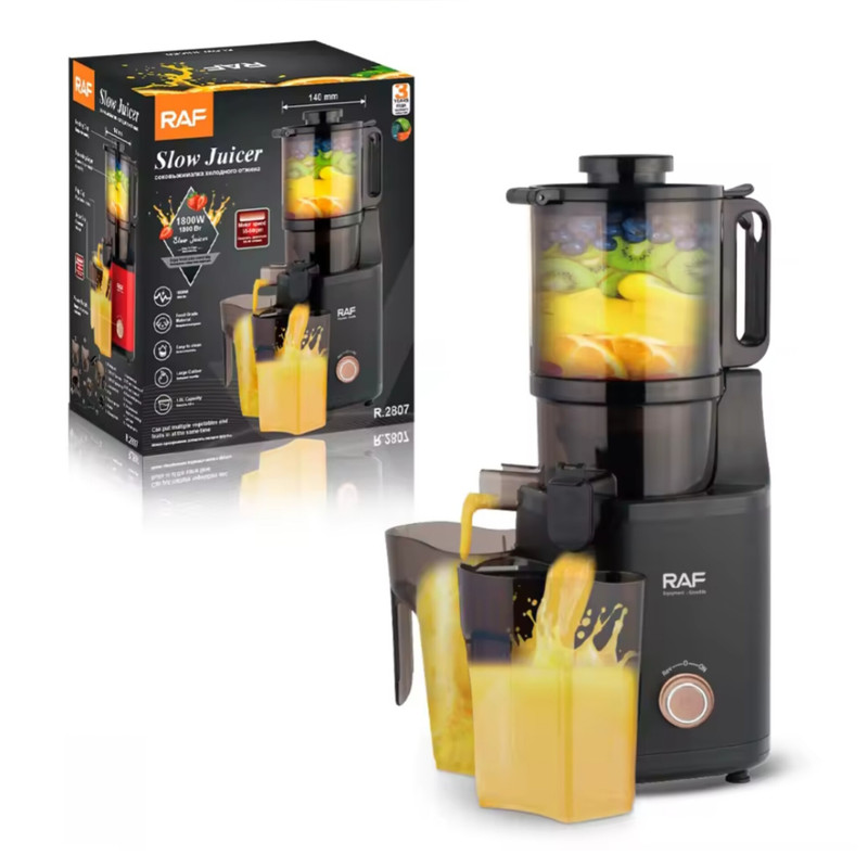 عصاره گیر یا آب میوه گیری آهسته راف مدل 2807 یک دستگاه آبمیوه گیری کارآمد است که از آن برای استخراج آب و عصاره میوه و سبزیجات استفاده میشود. در این دستگاه عصاره میوهها و سبزیجات با عنصر فشار و سرعت پایین استخراج میشود.