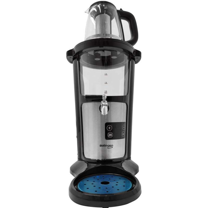به جرات می توان گفت یکی از مهمترین ارکان یک آشپزخانه ایرانی که پرکاربردترین ابزار نیز هست سماور یا کتری است. سماور های برقی با مصرف پایین و سرعت عمل بسیار بالاتر نسبت به نمونه های گازی از ارجحیت بالاتری بر خوردارند. همچنین ظرفیت بیشتر و کاربری آسان تر آنها را باز هم نسبت به کتری های برقی در پله بالاتری قرار می دهد. اما چرا سماور زولینگن را باید انتخابی شایسته دانست که تمام نیاز های شما را مرتفع می کند؟ در قدم اول قدرت 2200 واتی این سماور را باید در نظر گرفت در مرحله بعد کیفیت بالای متریال استفاده شده در این سماور را باید مد نظر قرار داد. کیفیت بالای شیشه که در برابر ضربه و حرارت مقاوم سازی شده علاوه بر آن پلیت های SUS 304 تمام استیل از نوع ضد زنگ کیفیت مادام العمر این محصول را تضمین می کند. ظرفیت سماور 3 لیتر است با شیر تمام استیل . همچنین ال ای دی های بسیار زیبایی نیز داخل سماور کار شده که جلوه بی نظیری به این محصول می بخشد. دما در این محصول کاملا قابل تنظیم است همچنین می توانید پس از جوش آوری در حالت گرم نگهدار نیز از این سماور استفاده کنید. تا دمای آب و چای را در میزان مشخصی ثابت نگه دارد. قوری نیز طراحی بسیار زیبایی دارد. وجود توری بسیار ریز تفاله گیر آن که به شکلی طراحی شده تا انتهای فوری را نیز پوشش دهد سبب می شود بهترین عصاره گیری از چای انجام شود.همچنین باید به وجود سینی چکه گیر قابل جدا شدن نیز اشاره کرد. خرید این محصول نه تنها زیبایی آشپزخانه شما را دو چندان می کند بلکه سرعت و سادگی را نیز برای شما به همراه می آورد.