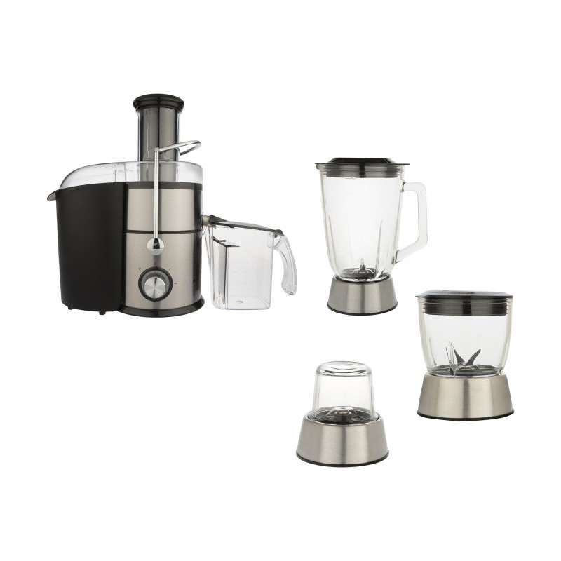 محصولات لوازم خانگي هايد وان پلاس سان يکي از بهترين لوازم خانگي ايراني ميباشد.از ويژگي هاي بارز اين محصولات کيفيت،خدمات و قيمت مناسب مي باشد.استفاده از مواد اوليه درجه يک و پشتيباني و خدمات عالي باعث شده تا لوازم خانگي هايد وان پلاس سان جايگاه خوبي در بين کالاهاي ايراني پيدا کند.جنس بدنه آبميوه گيري 4 کاره مدل HS-JB501 استيل ضد زنگ بوده و داراي موتور 800 وات همراه با بلبرينگ و دارای 2 تنظیم سرعت ميباشد.از مزيت هاي ديگر آن،دهانه 75 ميليمتري جهت ورود انواع ميوه و مواد غذايي،تيغه استيل ضد زنگ،سبد فيلتر ،مخزن تفاله بزرگ،قفل ايمني داخلي و محفظه آبميوه گيري نشکن ميباشد.آبميوه گيري 4 کاره مدل HS-JB501 داراي پايه هاي ضد لغزش ميباشد.