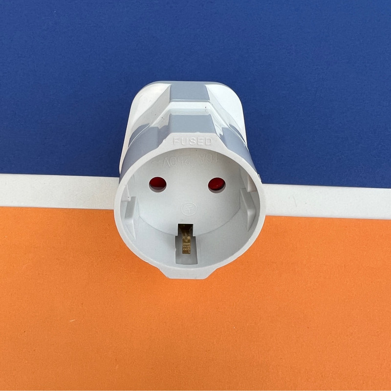 این مبدل برای تبدیل وسایل برقی دوشاخه به سه شاخه طراحی شده و برای تبدیل دوشاخههای ایران به سهشاخههای کشورهای زیارتی،انگلیسی، امریکایی-استرالیایی و اروپایی مناسب است.توجه کنید که این مبدل مناسب پریزهای ایران نیست و خروجی آن از نوع سهشاخهی تیغهای است.