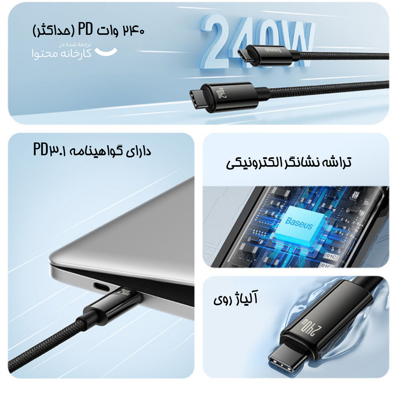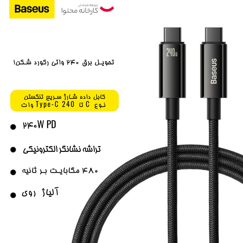 کابل تبدیل USB-C باسئوس مدل (TUNGSTEN  (240W طول 1 متر
