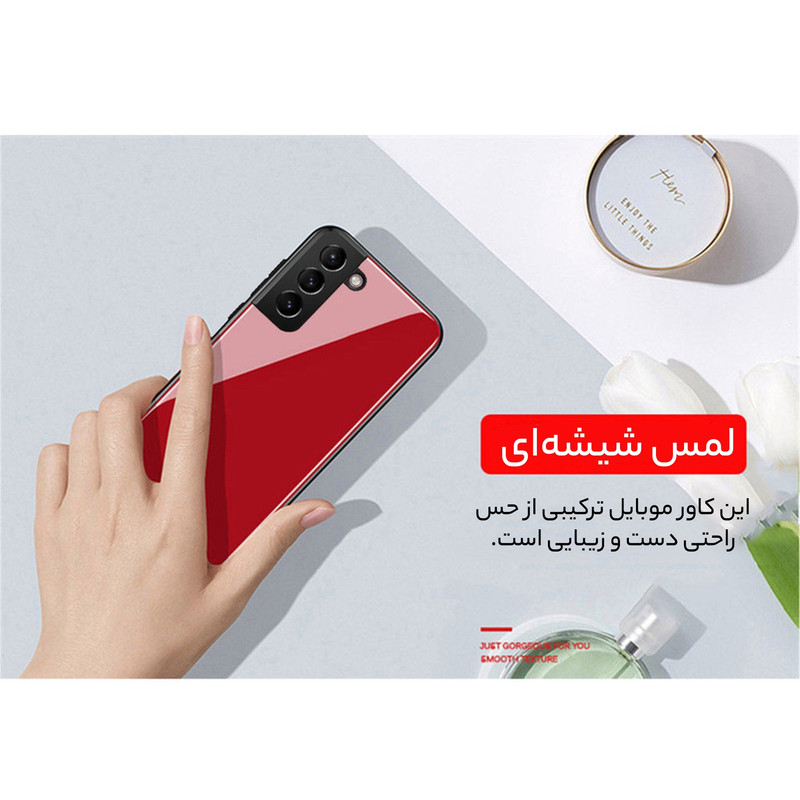 کاور سامورایی سری Glass Case مناسب برای گوشی موبایل سامسونگ Galaxy S21 FE در رنگ های متفاوت برای انواع سلیقه ها طراحی شده است. این قاب از سه قسمت اصلی بامپر سیلیکونی، پنل پلی کربنات و شیشه فشرده شده تشکیل شده که مجموعا یک قاب 360 درجه را عرضه می کنند.