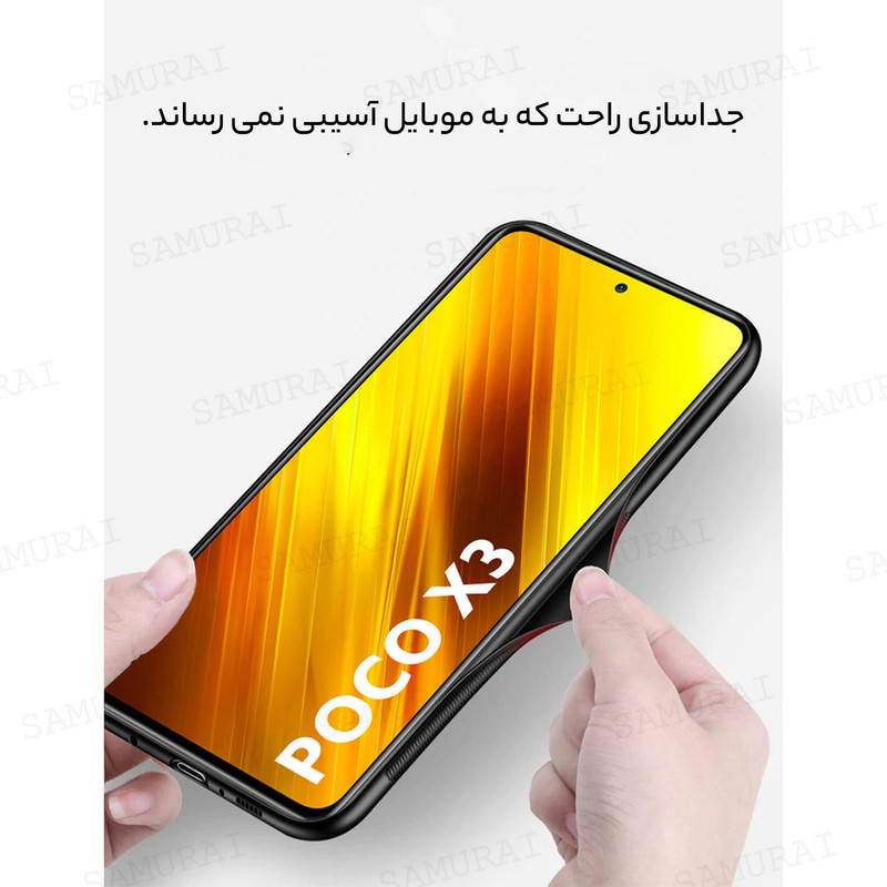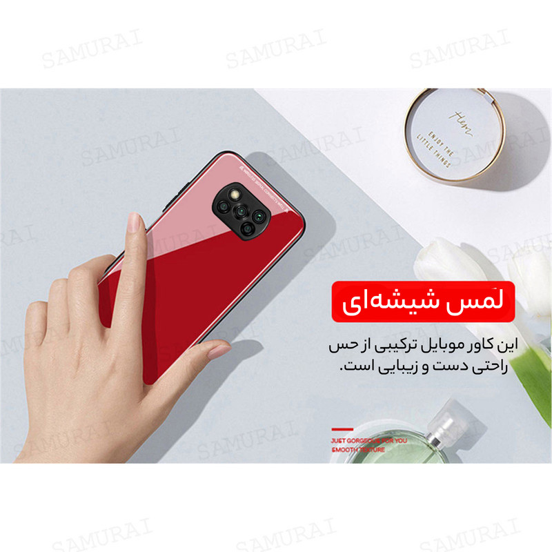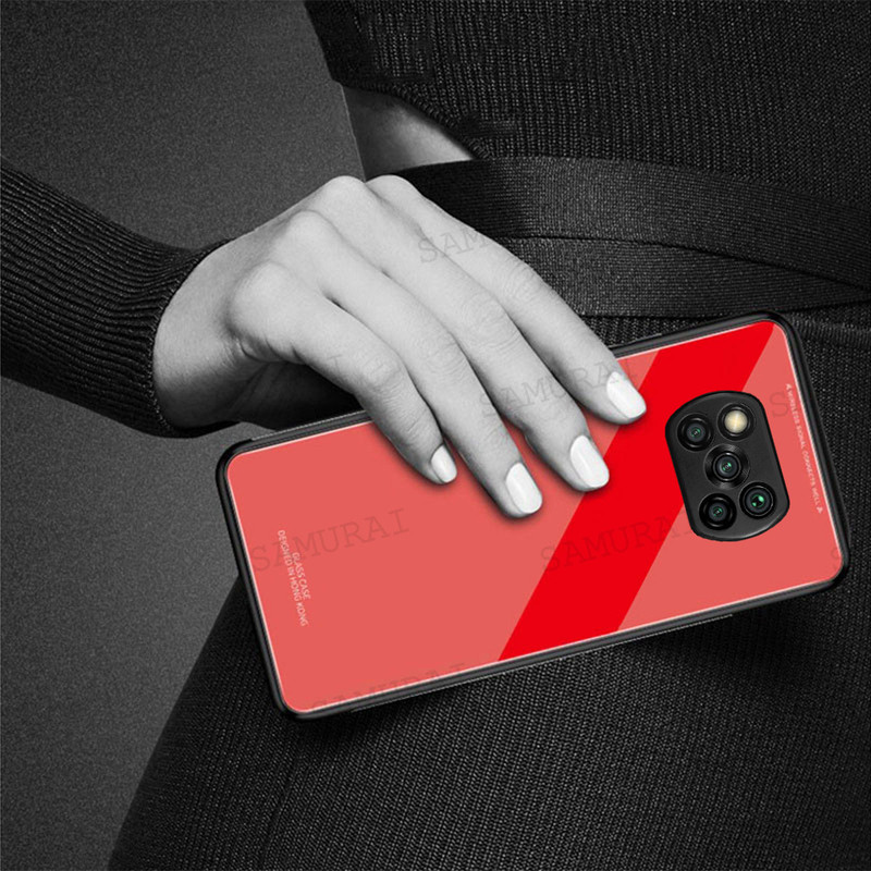 کاور سامورایی سری Glass Case مناسب برای گوشی موبایل شیائومی Poco X3 در رنگ های متفاوت برای انواع سلیقه ها طراحی شده است. این قاب از سه قسمت اصلی بامپر سیلیکونی، پنل پلی کربنات و شیشه فشرده شده تشکیل شده که مجموعا یک قاب 360 درجه را عرضه می کنند.