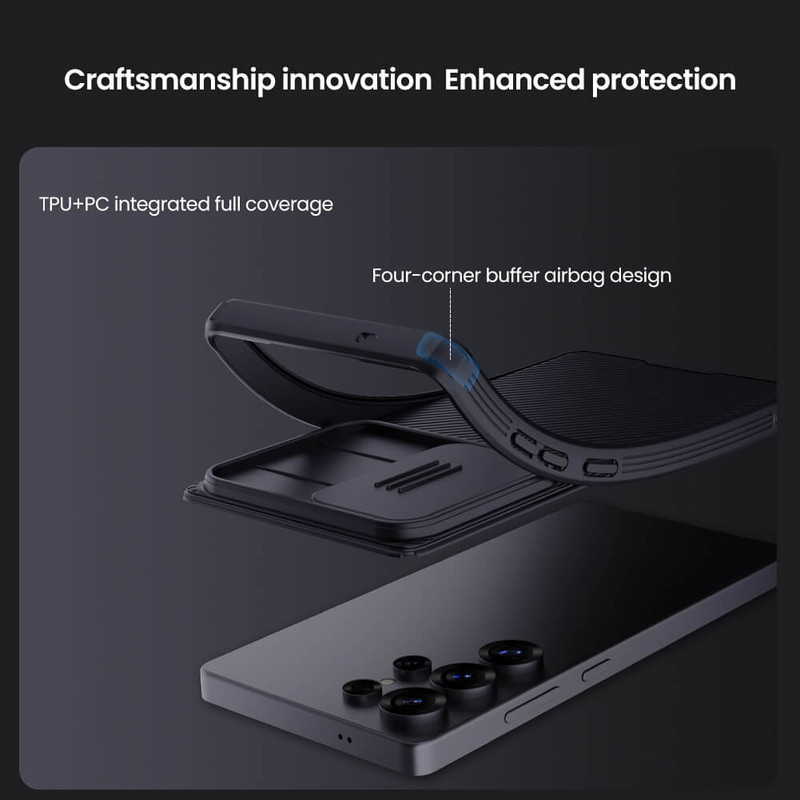 بهترین را برای غول پرچم دار سامسونگ خود انتخاب کنید. بهترین ها، بهترین ها را میطلبند! شرکت نیلکین بار دیگر با طراحی جدید اقدام به تولید قاب های کمشیلد پرو ( CamShield Pro ) گوشی موبایل سامسونگ Galaxy S25 Ultra کرده است .همانطور که میدانید قاب محافظ گوشی یکی از مهم ترین لوازم جانبی موبایل است که برای محافظت گوشی الزامیست؛مواد اولیه ی قاب CamShield Pro گوشی Samsung Galaxy S25 Ultra از دو جنس میباشد. این قاب محافظ یک تیکه، در قسمت پشت از مواد سخت مرغوب PC ساخته شده و در قسمت دور تا دور و لبه های قاب از مواد TPU که کمی انعطاف پذیر است ساخته شده است.و همچنین دارای محافظ لنز دوربین کشویی بسیار با کیفیتی هست؛برش های گارد کمشیلد پرو گوشی سامسونگ گلکسی S25 Ultra در قسمت پورت ها و دوربین با دقت بسیار بالایی انجام شده،همچنین پوششی از همان جنس منعطف TPU بر روی دکمه ها تعبیه شده که خود محافظی برای دکمه های گوشی کاربر است.؛طراحی قاب کمشیلد پرو گوشی Samsung Galaxy S25 Ultra نکته ی بسیار حائز اهمیتی دارد که این مدل گارد Nillkin را از بقیه ی ،قاب های نیلکین متمایز میکند آن هم درب کشویی است که در پشت گارد برای محافظت از لنز دوربین گوشی تعبیه شده است که بسیار مناسب برای کابرانیست که از بابت خراشیدگی و ضربه به لنز دوربین موبایل سامسونگ گلکسی S25 Ultra نگرانی دارند با قاب محافظ نیلکین دیگر از این بابت نگرانی نخواهند داشت، درب کشویی لنز را ببندید تا به لنز گوشی ضربه یا خط و خشی وارد نشود و زمان استفاده از دوربین درب کشویی را کنار میزنید. حتی میتوان گفت موقعی که محافظ لنز دوربین بسته است اگر خودتان هم بخواهید نمیتوانید ضربه ای دوربین وارد کنید. موضوع دیگری که این گارد CamShield Pro گوشی سامسونگ گلکسی S25 Ultra در طراحی دارد ،وجود شیار هایی در دو طرف قاب است که به دلیل برجستگی این شیارها ،گوشی از دست کاربر لیز نمیخورد و این طراحی در قسمت پشت قاب محافظ کمشیلد پرو گوشی Samsung Galaxy S25 Ultra نیز هست. مشخصات شکل ظاهری، این گارد را به گونه ایی ساخته که کاربر با در دست گرفتن گوشی با این قاب احساس خوشایندی بدست می آورد زیرا این طراحی بسیار زیبا و خیره کننده و موجود در رنگای جذاب و مختلف باعث شده کاربر به راحتی بتواند گوشی را با تیپ و استایل مورد علاقه خود ست کنید.
