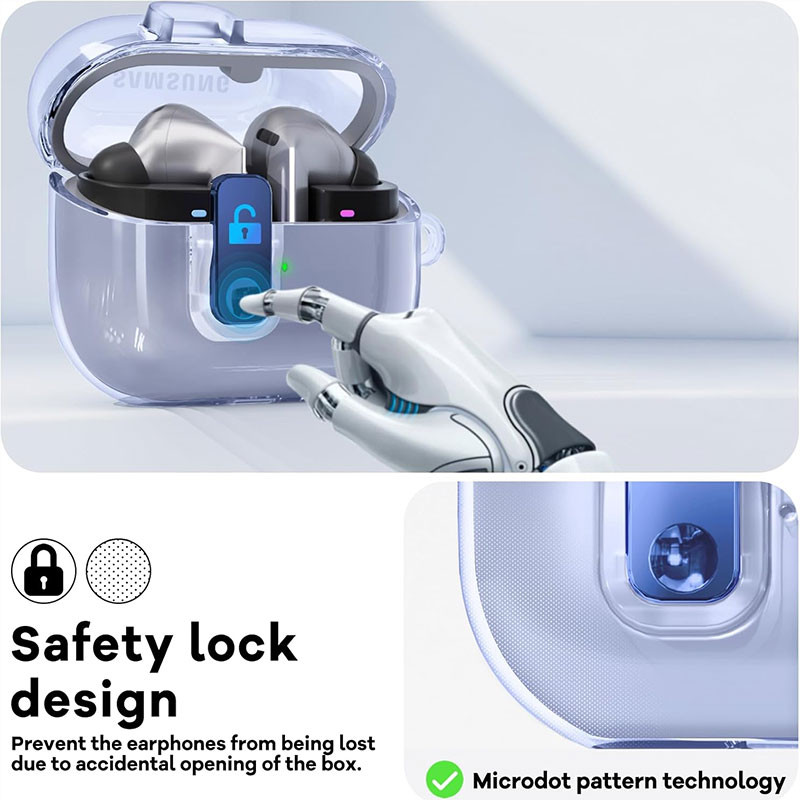 قاب بادز مسیر مدل ELEHOLD که از پلاستیک نرم و مرغوب ساخته شده که حفاظت کامل از هدفون در برابر گرد و غبار، خط و خش و ضربات خارجی ارائه میدهد. با حفظ پورت شارژ، امکان شارژ هدفون بدون نیاز به برداشتن کیس وجود دارد و استفاده از تمامی قابلیتها بسیار راحت است. درپوش کیس دارای قفل فشاری محکم برای نگهداری ایمن سامسونگ گلکسی بادز 3 و 3پرو است که محکم بوده و از افتادن جلوگیری میکند. طراحی شخصیسازی شده، شیک و زیبا است. این کیس مجهز به آویز است که حمل هدفون را در هر زمان و مکان ایمن و راحت میسازد.