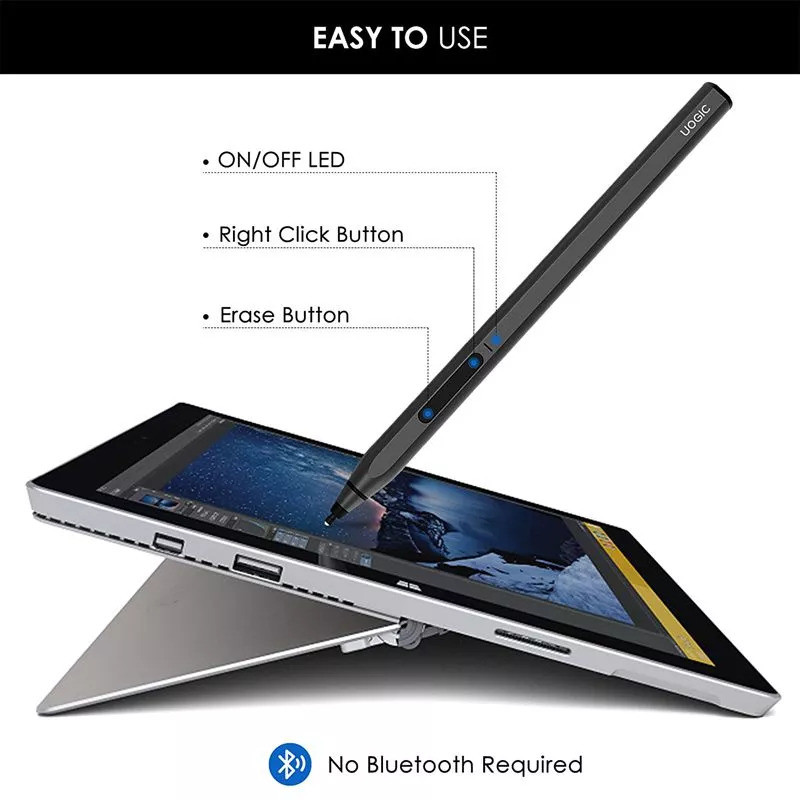 قلم اکتیو شارژی یوجیک مدل C582s با طراحی زیبا و سبک جایگزین قلم های گران قیمت محصولات مایکروسافت سرفیس می باشد که با تمامی دستگاه های مایکروسافت سرفیس و تمامی تبلت ها یا لپ تاپ هایی که قلم آنها از MPP (Microsoft pen protocol) بهره میگیرند سازگاری کامل را دارد.از مزایای منحصر به فرد این قلم می توان به قابل شارژ بودن آن اشاره کرد. تنها با 20 دقیقه شارژ از طریق کابل میکرو USB ، تا 50 ساعت می توان از این قلم استفاده مداوم داشته باشید. قلم اکتیو یوجیک با قابلیت تشخیص 4096 درجه از فشار ، تجربه لذت بخشی را برای انجام امور طراحی و نقاشی برای کاربر فراهم می آورد. کیت چهار عددی نوک قلم یوجیک همراه این محصول ارائه خواهد شد تا کاربر برحسب نیاز خود از نوک مورد نظر بهره گیرد.