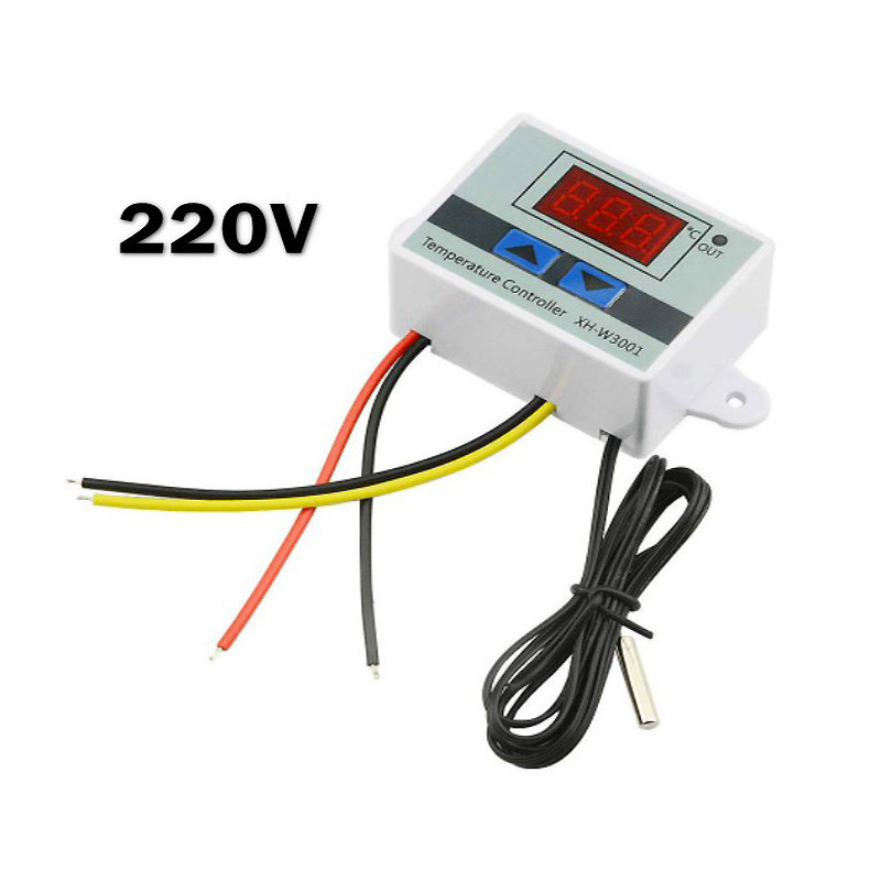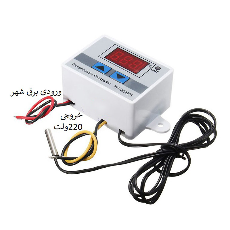ماژول ترموستات XH-W3001 ، این ماژول یک ترموستات پرکاربرد برای اندازه گیری دما در بازه 50- الی 110 درجه سانتی گراد با دقت 0٫1 درجه است. ولتاژ کاری این ترموستات 220 ولت AC است. ماژول کنترل دما XH-W3001 با خارج شدن از بازه دمایی که برای آن تعریف شده ولتاژ 220 ولت را در دوسر خروجی رله قرار می دهد. دقت داشته باشید که در دو سر سیم زرد و مشکی در ابتدا ولتاژ صفر بوده و با وصل شدن رله ولتاژ 220 ولت در دو سر آن قرار می گیرد. شما می توانید با استفاده از این ولتاژ 220 ولت هیتر ، فن ، کولر و یا هر وسیله دیگری را تغذیه کنید.